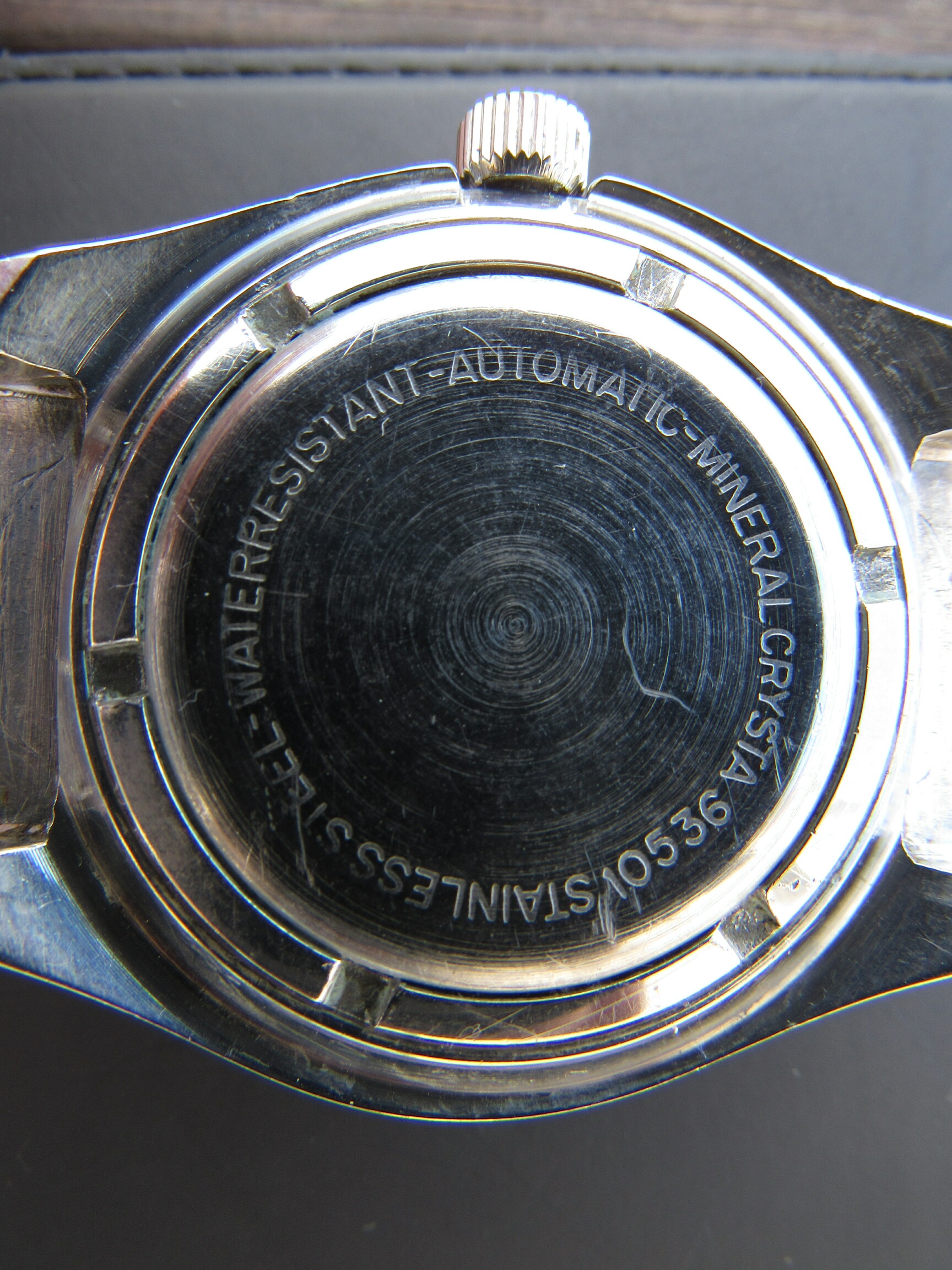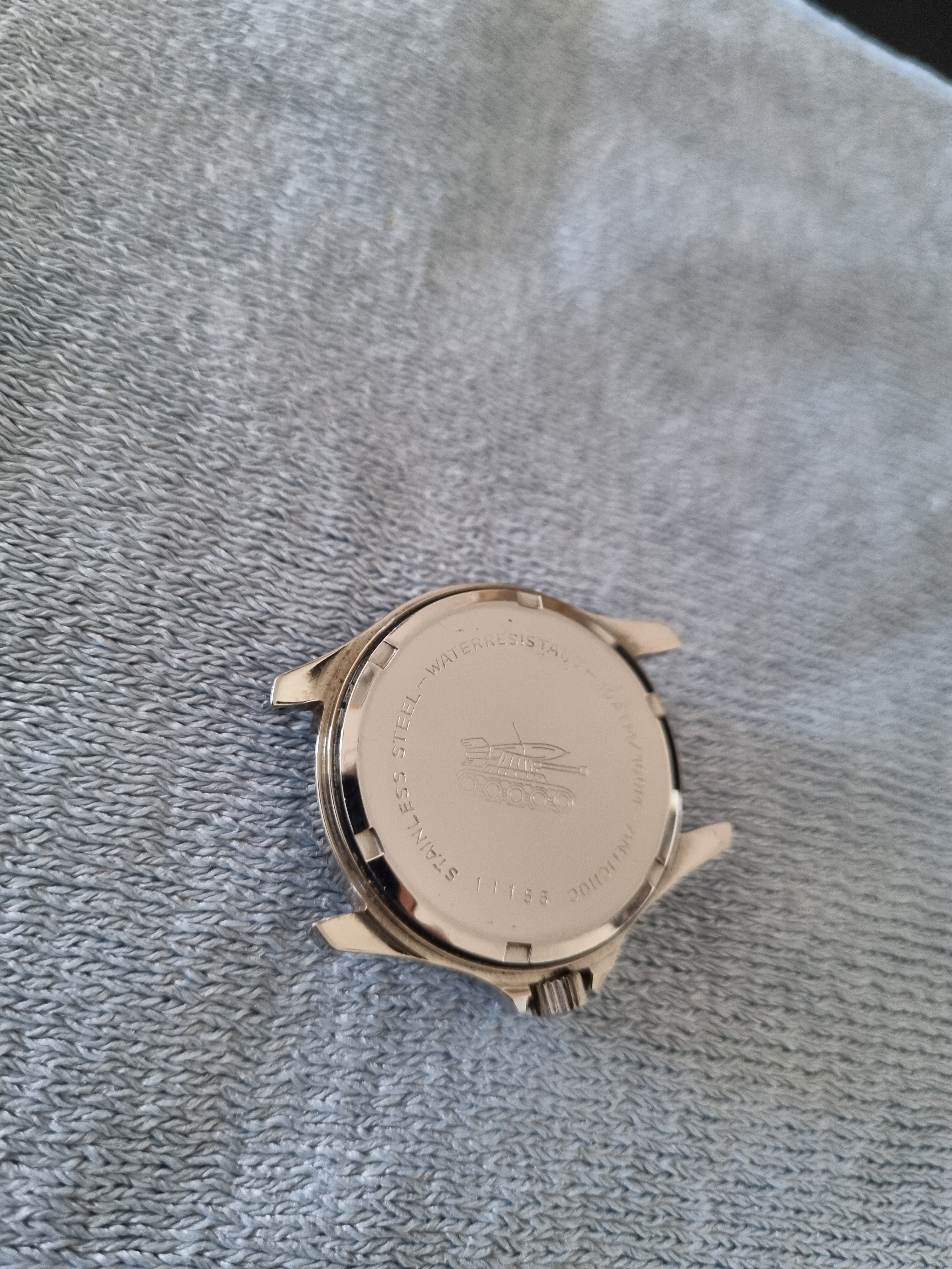 Het horloge lijkt me verder zo goed als niet gedragen. Het glaasje wat gepoetst met polywatch en nu nog wachten op een bandje van de forumsponser.