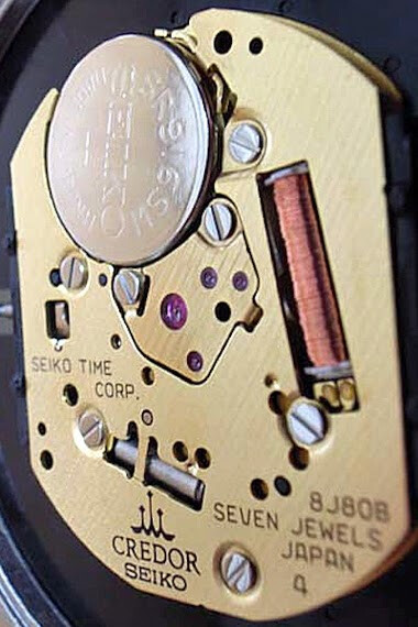 Wie dem auch sei, het horloge is 100m waterdicht, en het uurwerk is een thermo-gecompenseerd high accuracy quartz uurwerk wat maximaal 10 seconden per jaar af mag wijken, met een batterij duur van 5 jaar. Het uurwerk heeft geen anti-backlash of high torque motor, maar het tikt rechter op de indices dan de 9F. Foto’s zijn moeilijk te vinden, dus hieronder een voorbeeld uit de 8J familie.