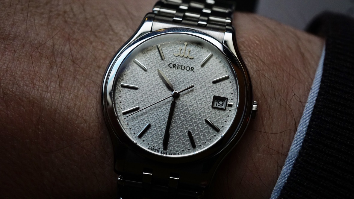 Credor is echter een moeilijk merk. De geschiedenis van Credor begint een jaar voor mijn geboorte, in 1974. Seiko lanceerde een merk wat de luxe tak moest vertegenwoordigen, in eerste instantie Crête D’or geheten. Pas op de accent circonflexe. Het betekent de kop of kruin van goud, bij benadering. Dat werd later samen gevoegd tot Seiko Credor, en jaren lang werden die horloges verkocht met dubbel logo, net als Grand Quartz en Grand Seiko.