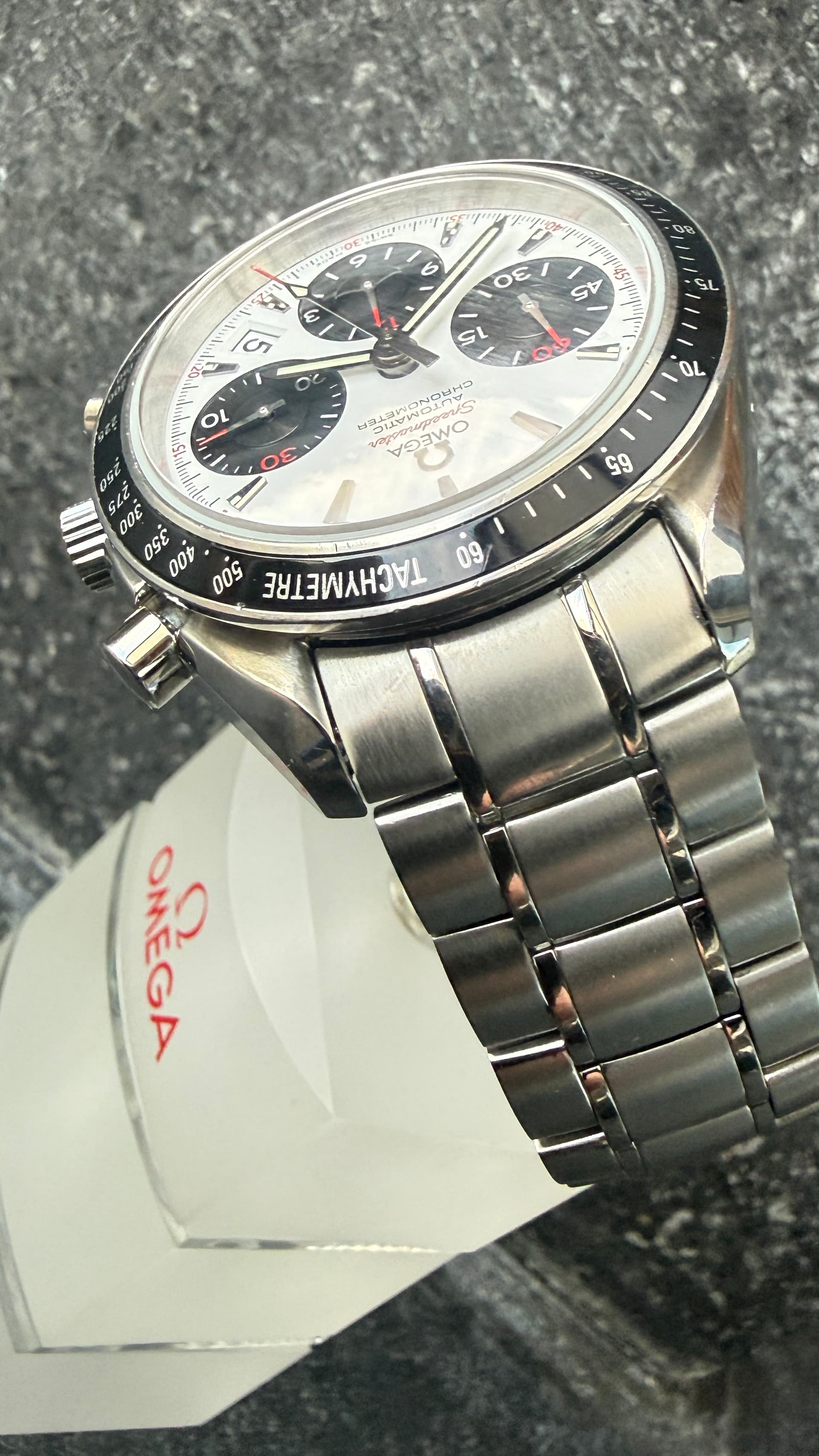 Nadat ik ‘het’ de afgelopen 15 jaar met mijn in de vorige decennia aangeschafte horloges moest ‘doen’ heb ik mezelf op een Speedmaster (automatic) getrakteerd. Lang wikken en wegen, welke moest het worden maar de Panda dial springt er voor mij toch het meeste uit. Dit exemplaar is uit 2012 en voorzien van een 3304 uurwerk.