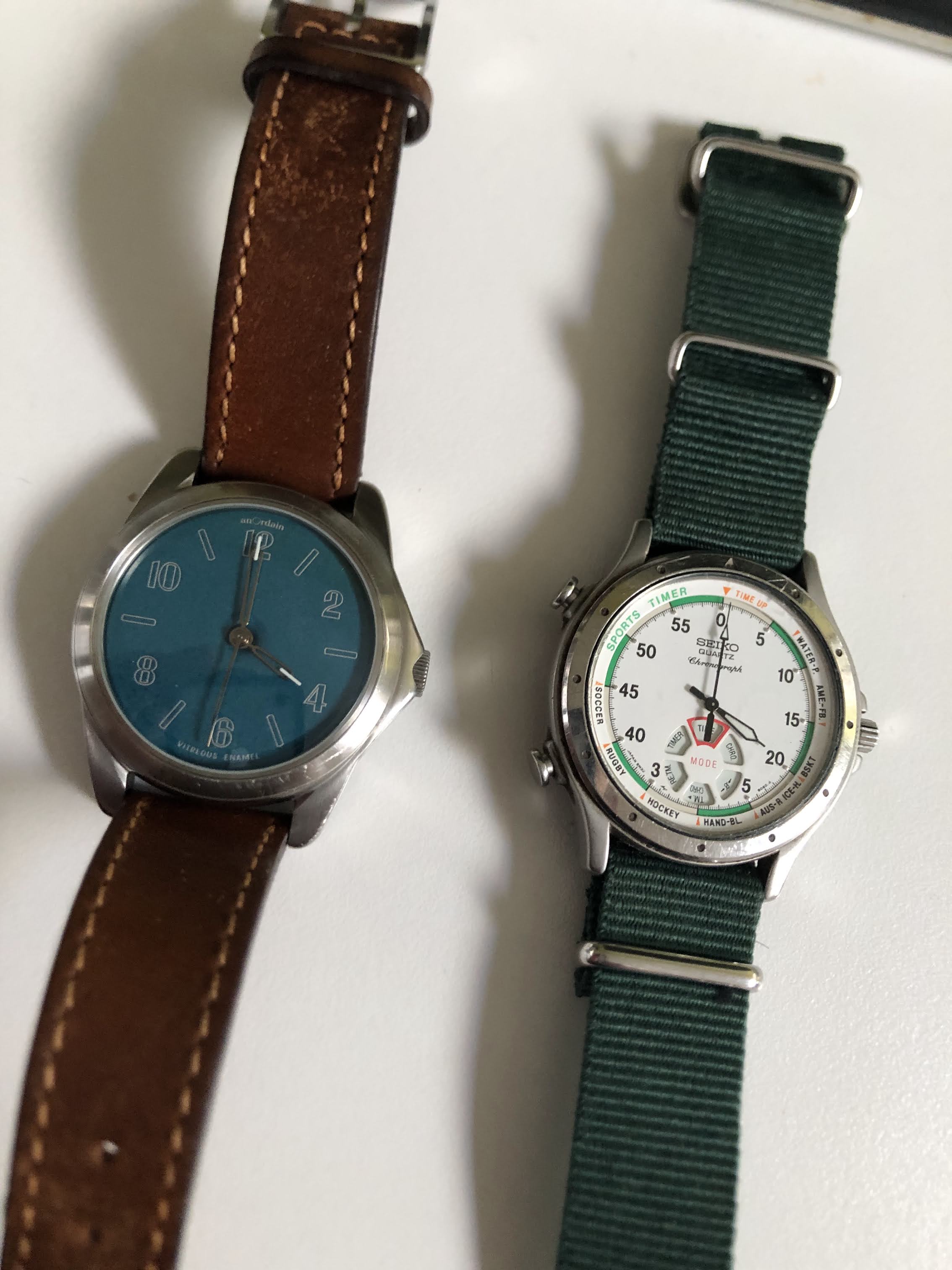 Hoewel ik probeer om mjin Anordain model 2 zoveel mogelijk te dragen is af en toe afwisselen natuurlijk leuk. Vandaag besloten deze Seiko van > 25 jaar oud weer eens om te doen. Ik heb hem een paar jaar geleden al eens deskundig laten opknappen omdat een van de motortjes (heet vast anders) het niet meer deed.