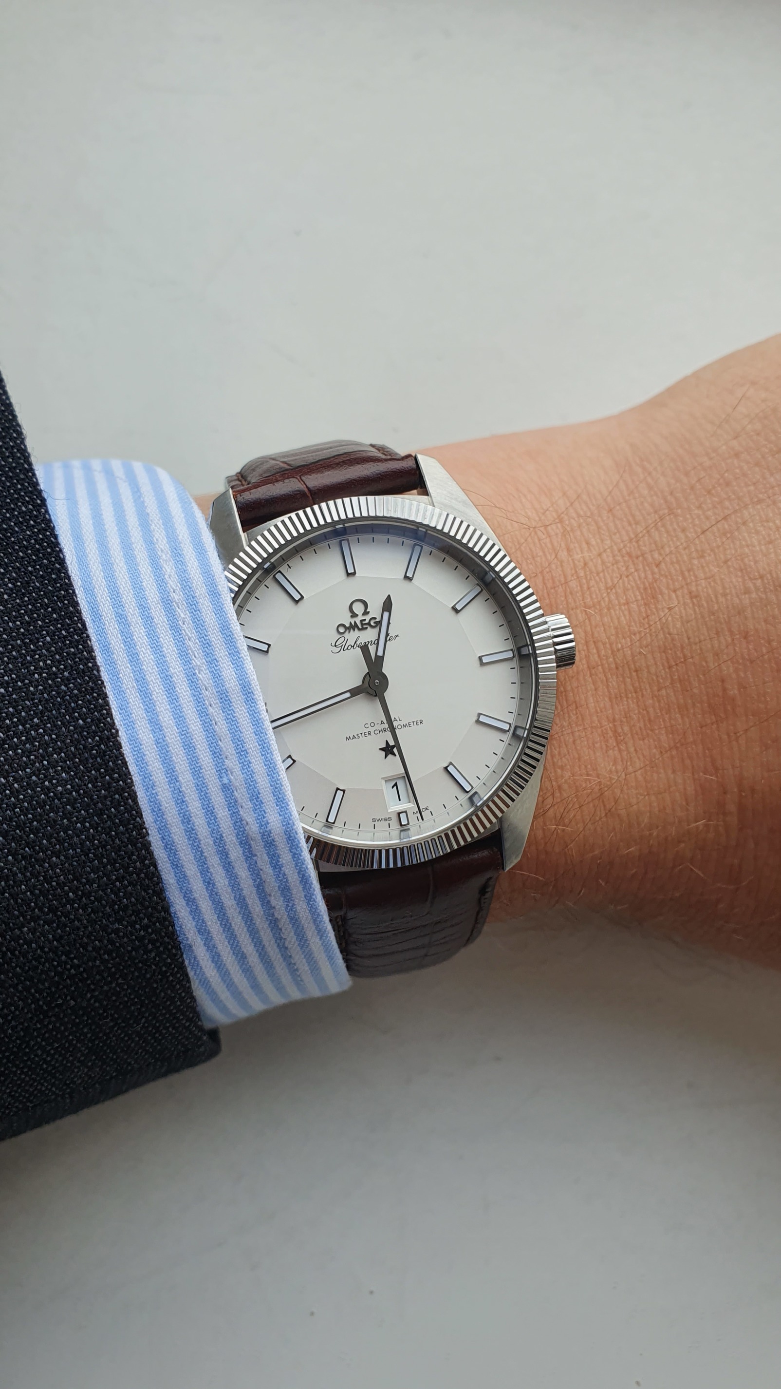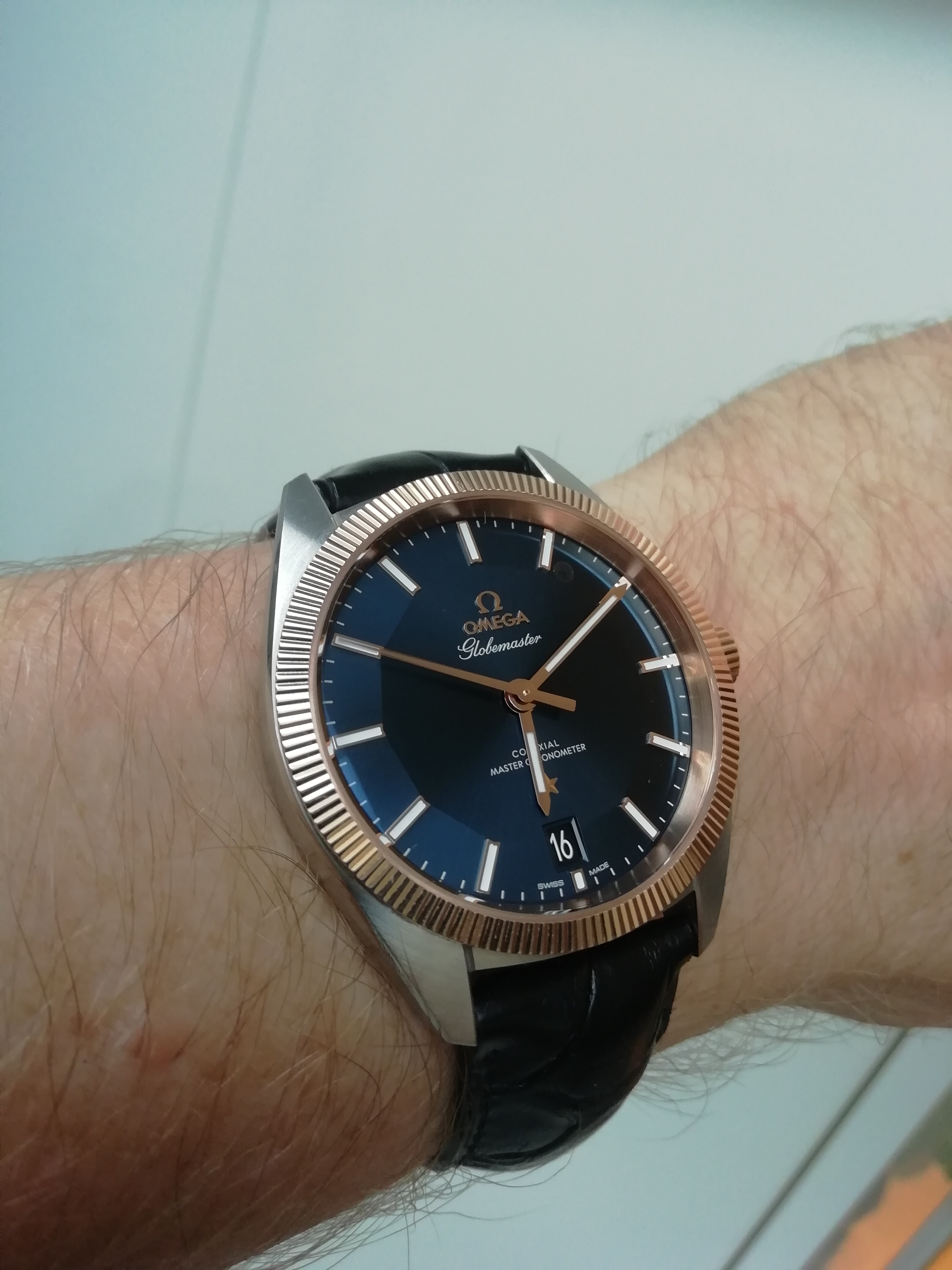 Ja. Ook dat nog. De Globemaster is qua design geĂŻnspireerd op Constellation horloges uit jaren '50, '60 en '70. Verschillende design-elementen zie je terug in deze klok, waaronder de pie pan wijzerplaat (gekant en met hoogteverschil), de C-case, de wijzers en de ster op de wijzerplaat. Ook de achterkant doet denken aan de Constellations van weleer, met de medaille met het Geneefse observatorium en 8 sterren.