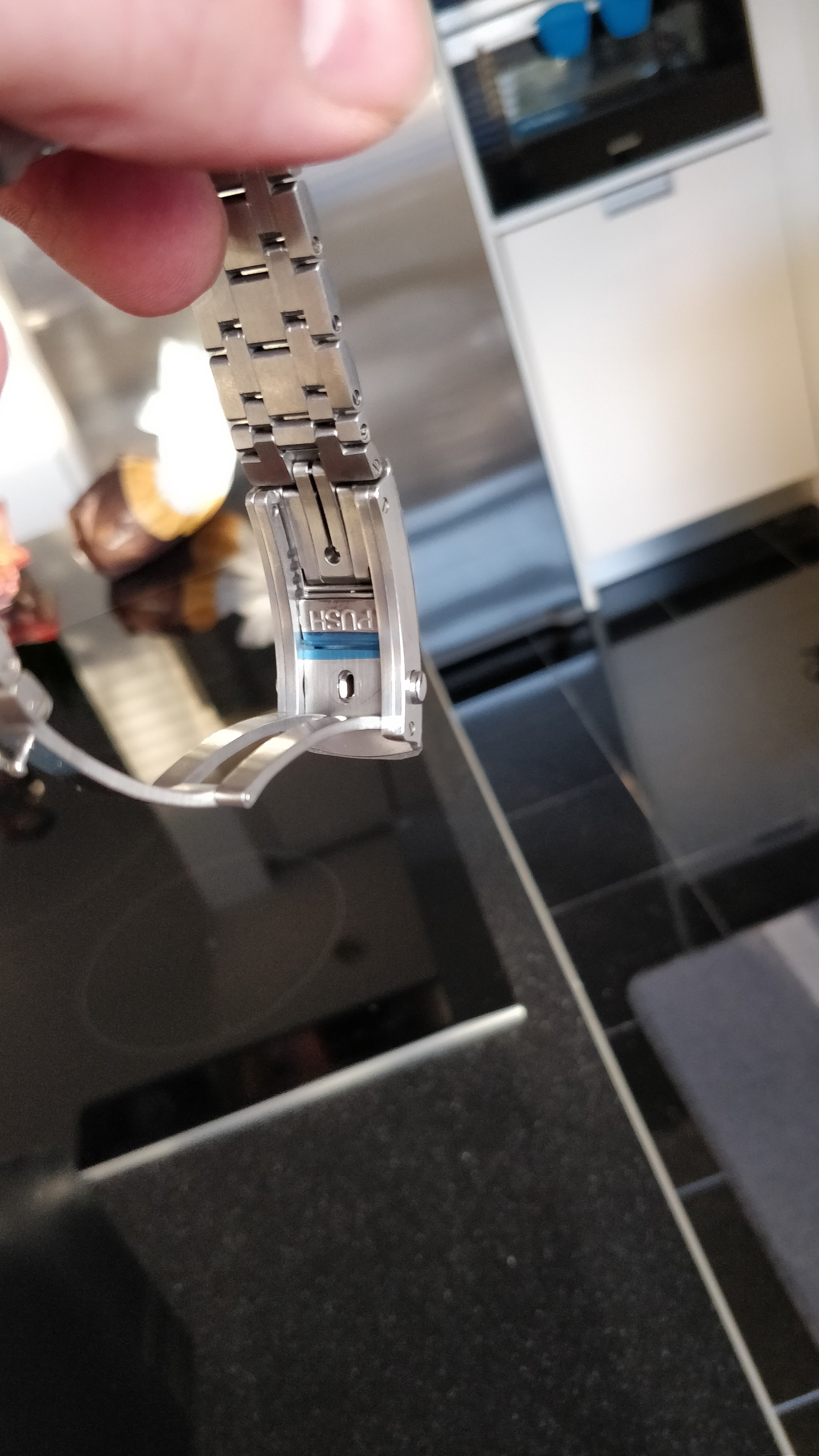 *Zeer fijne stalen band met micro-adjust (ik vind de nieuwe design met meer rechte lijnen veel mooier dan de vorige versie. Het valt lekker op mijn 17,5cm pols.