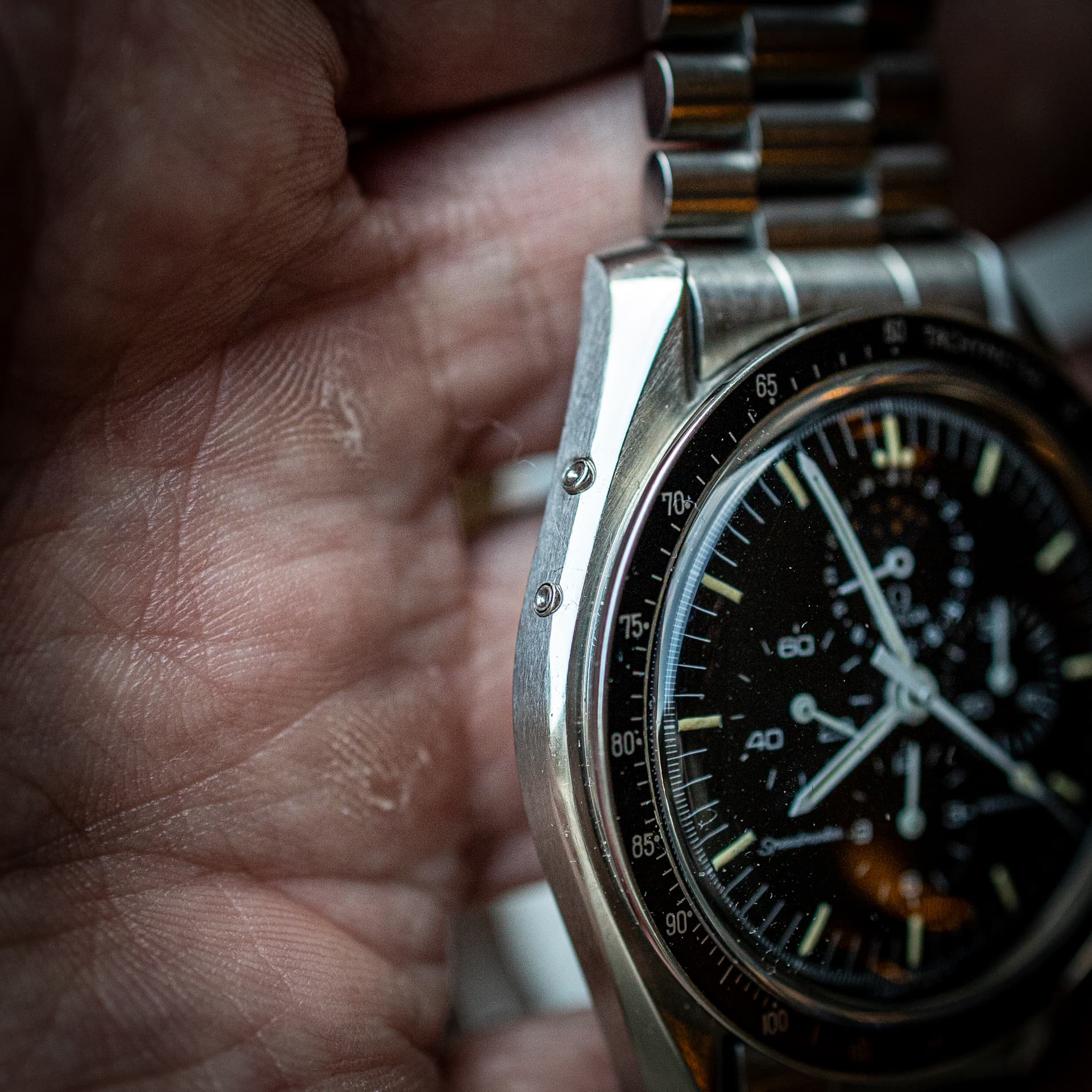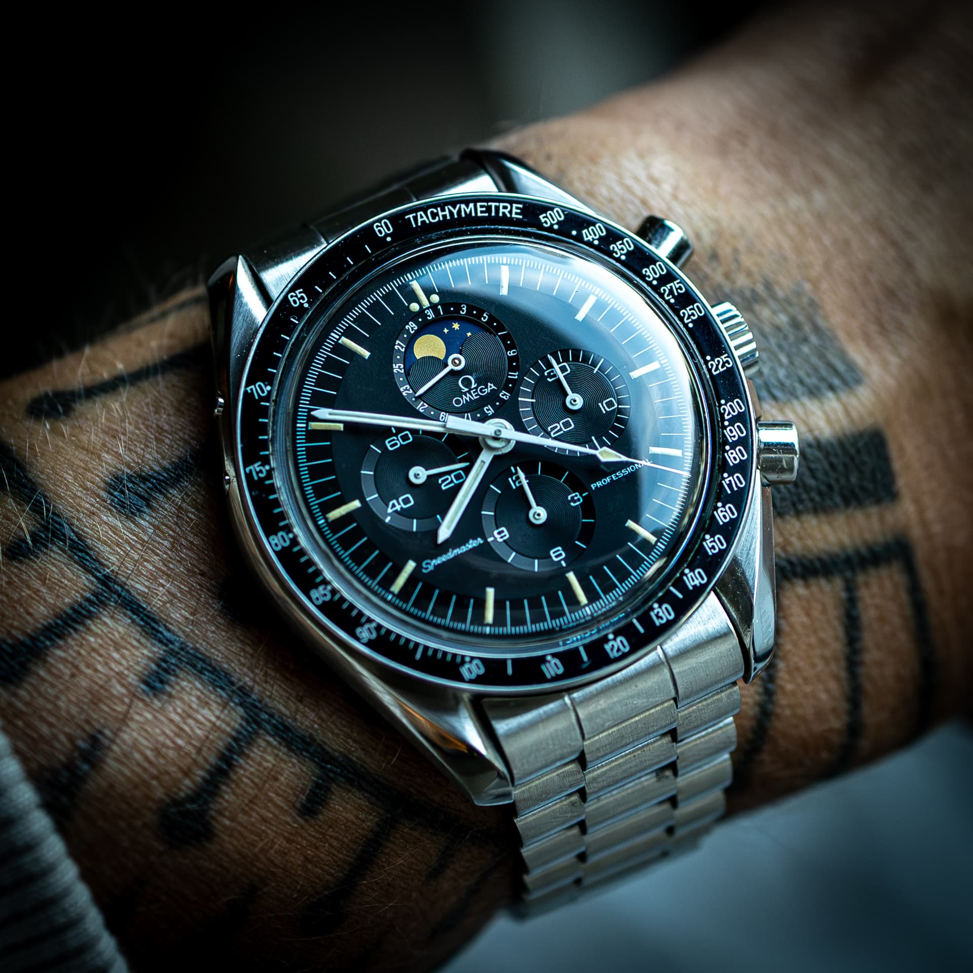 In ieder geval is Small Moon zeldzaam. Dat vind ik natuurlijk hartstikke leuk als Speedmaster-enthousiast. Ook vind ik de kleine maan qua verhouding beter in balans met de de rest van de dial. Het sterrenpatroon, met sterren die verschillen van grootte en vorm (het lijkt wel handgeschilderd uit de losse pols) heeft veel charme. Zeker in combinatie met de warmte van het tritium en de prachtige bracelet. Al met al maakt dit het horloge af voor mij: dit is de Speedymoon die ik graag wilde hebben.