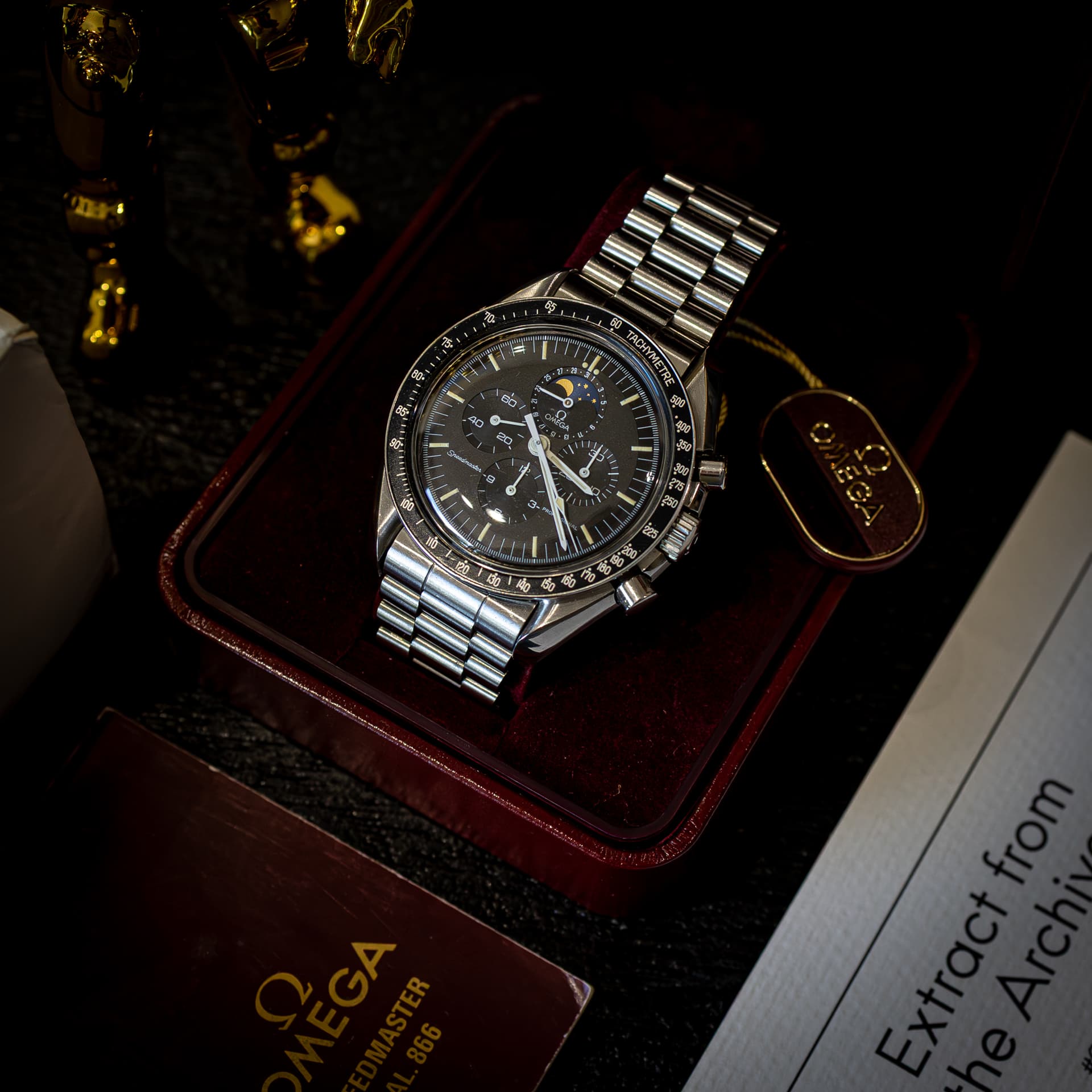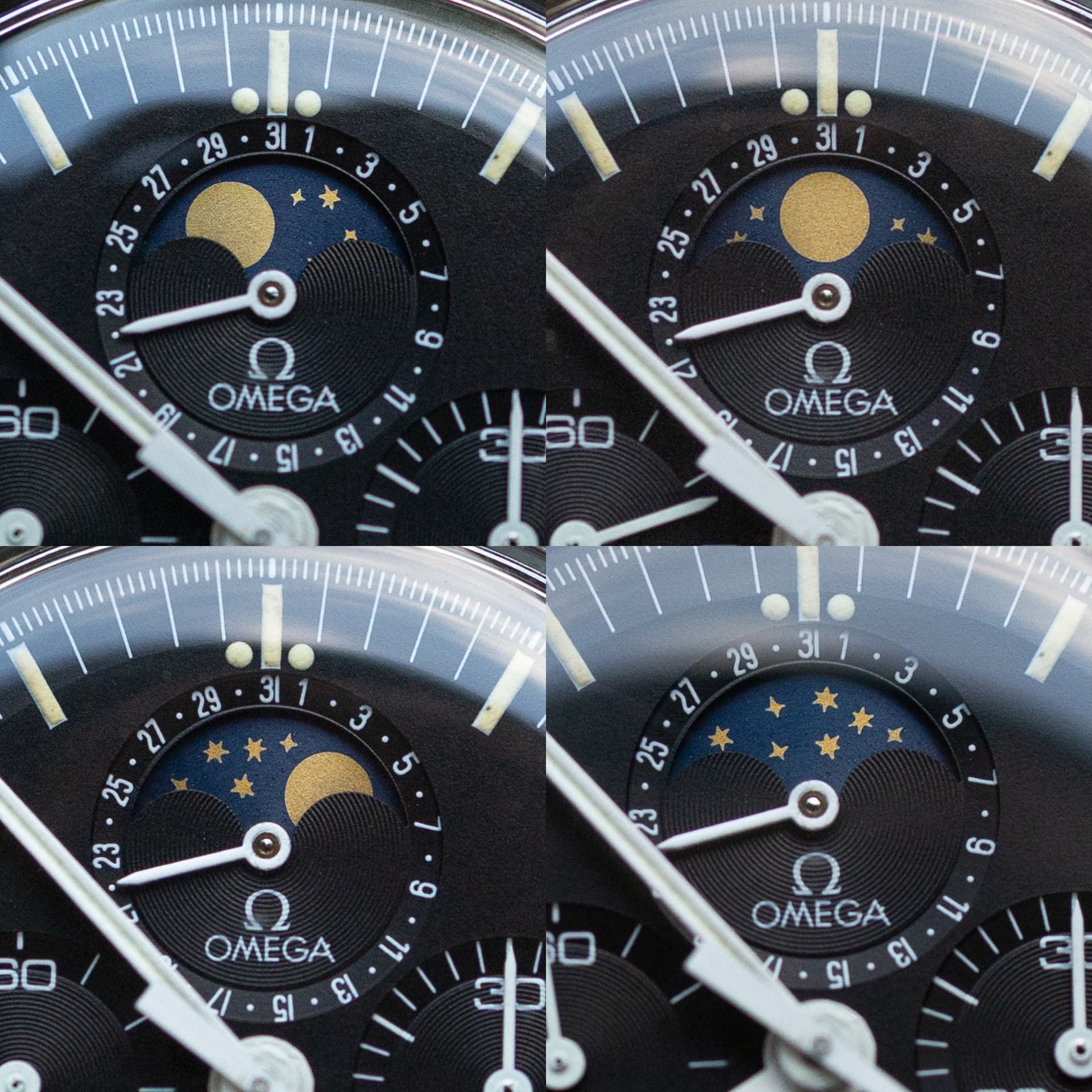 De Speedymoon was de eerste Speedmaster met een maanfase complicatie. Zo’n 1300 exemplaren van gemaakt van eind ’85 tot ’88/’89. De waardeloze verkoop kwam mede door de prijs (40% duurder dan een standaard Speedy) en na dit debacle duurde het nog 10 jaar voordat Omega een maanfase in de Speedmaster opnieuw aandurfde