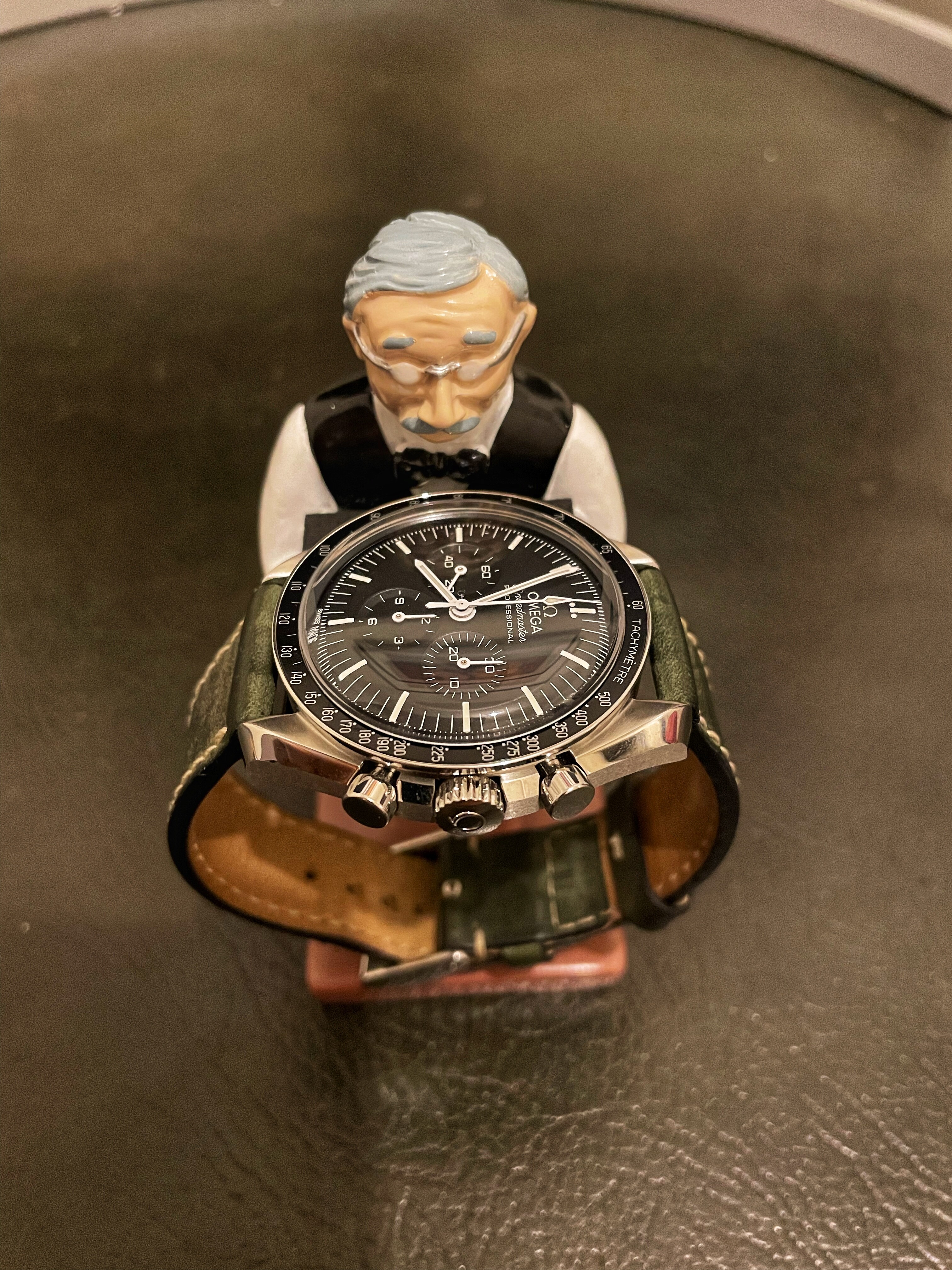 Zeker nu met de nieuwe band is de Speedmaster echte verademing (tijdelijk op leer omdat ie dat ook heel goed kan hebben en de band nog versteld moet worden).Toen kwam @Rolopalooza met een net ontmaagde Speedmaster op het forum voorbij.