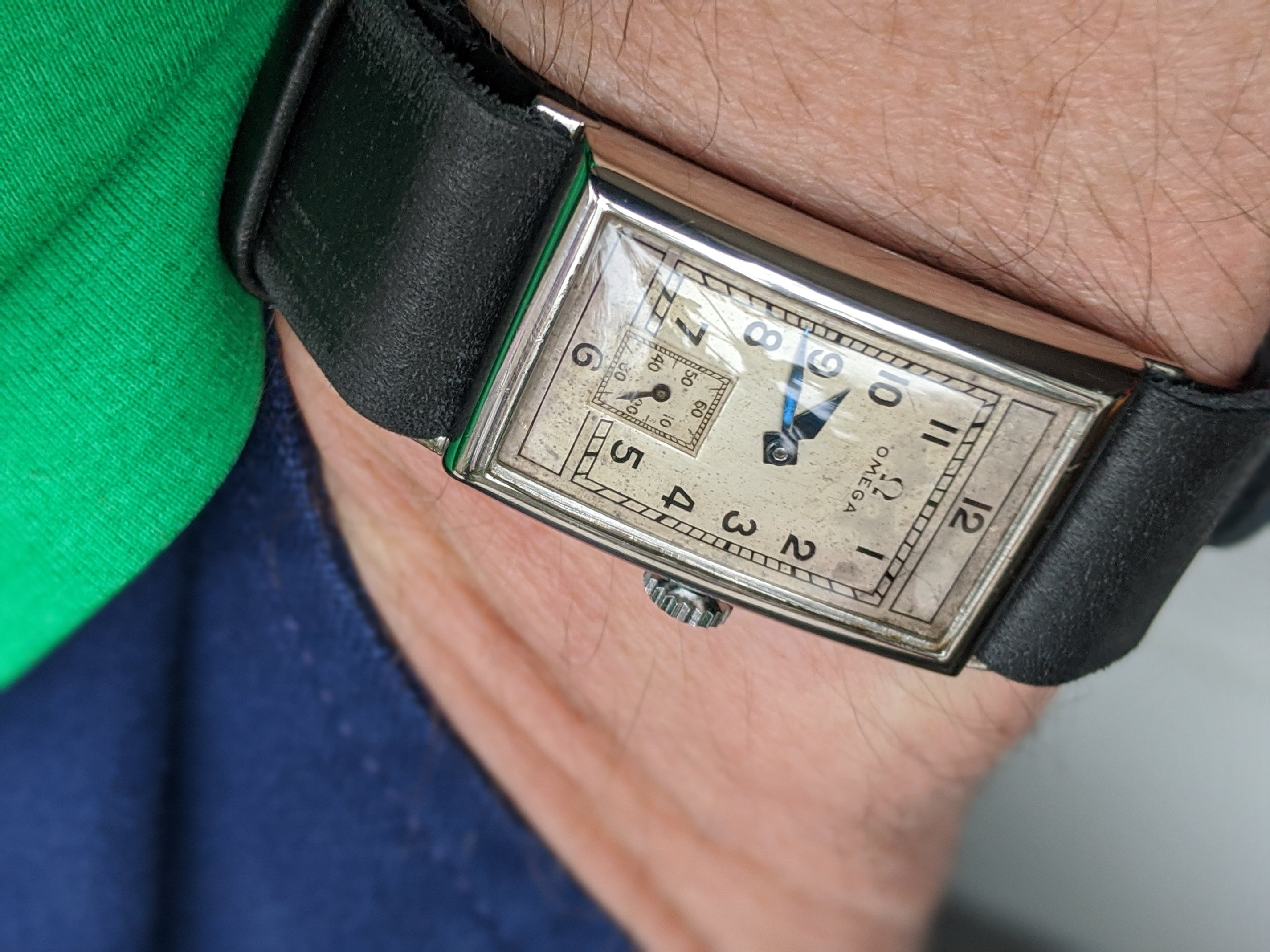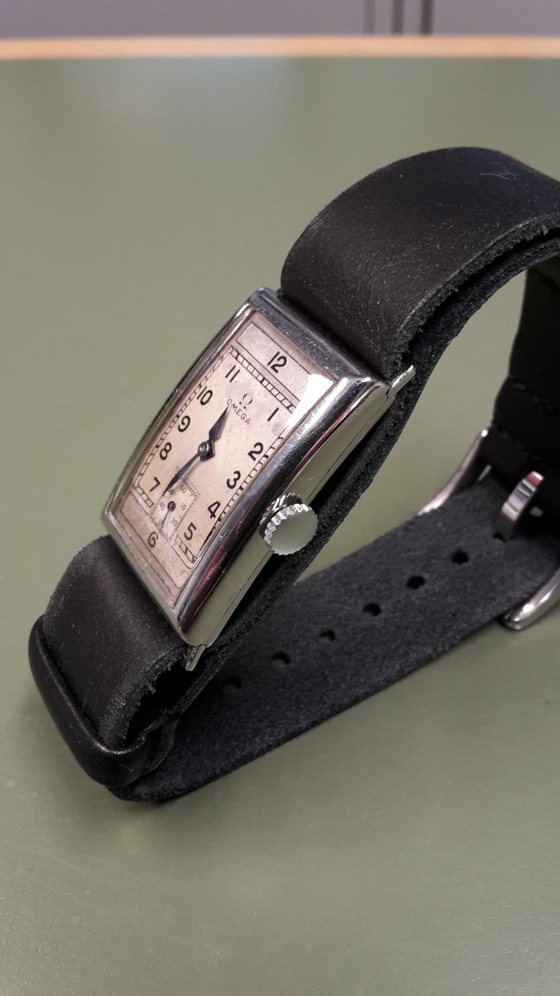 Een tijdje geleden besliste ik mijn Omega collectie - voor mij althans - compleet te maken mét een Art Deco: tonneau of tank. Een voorzichtige zoektocht startte. Onverwachts kwam ik deze op het spoor, met lichte twijfel over de echtheid gezien de matige prijs die men vroeg. 'k wou het aanbod niet aan mij voorbij laten gaan en schafte de horloge aan eind 2019.