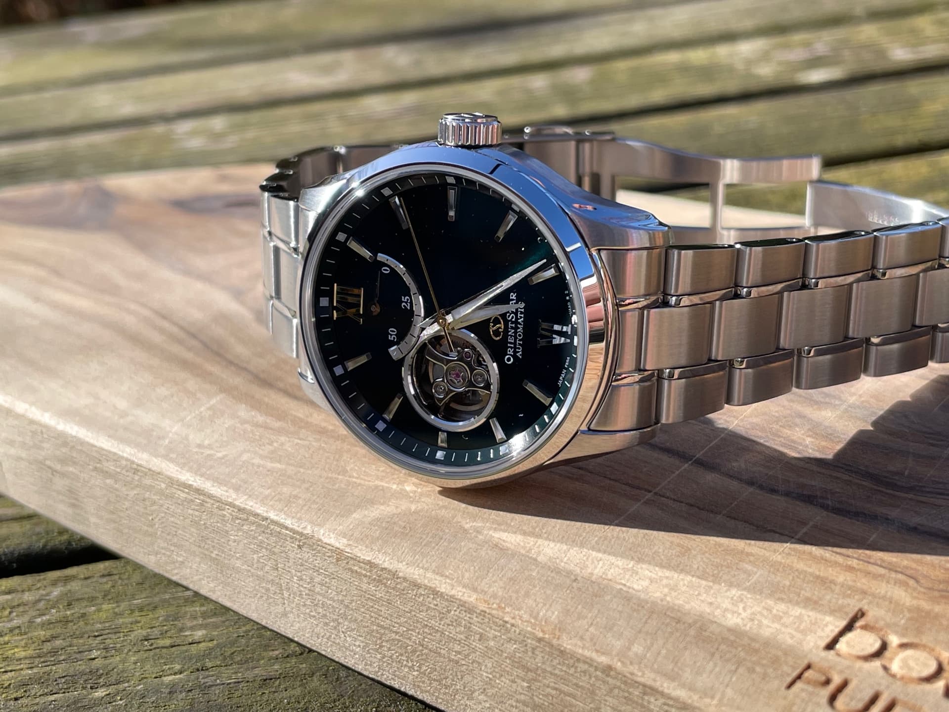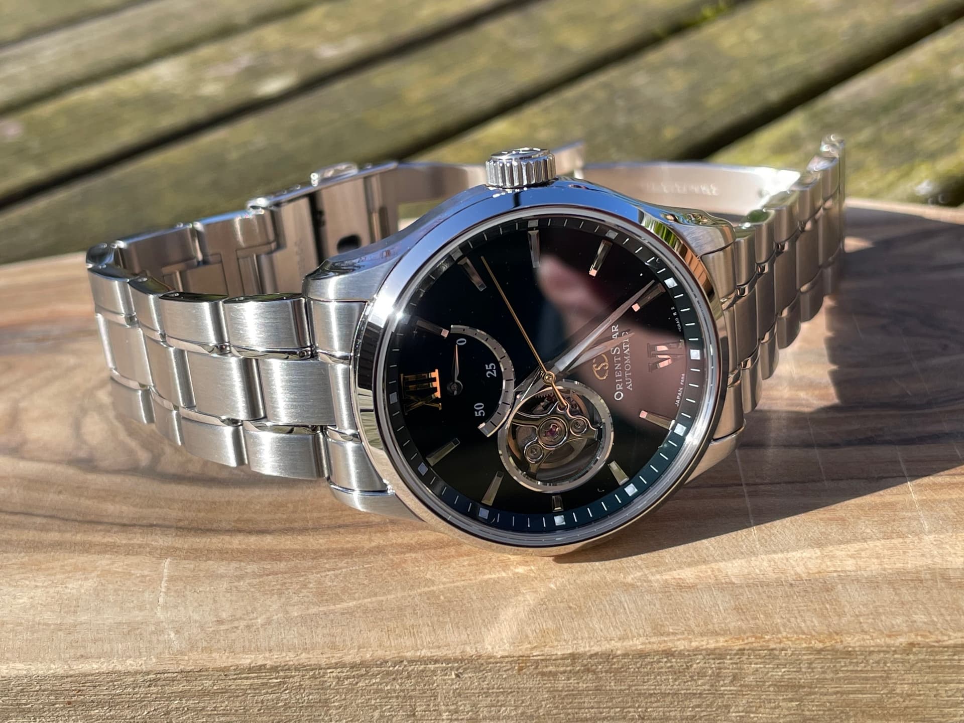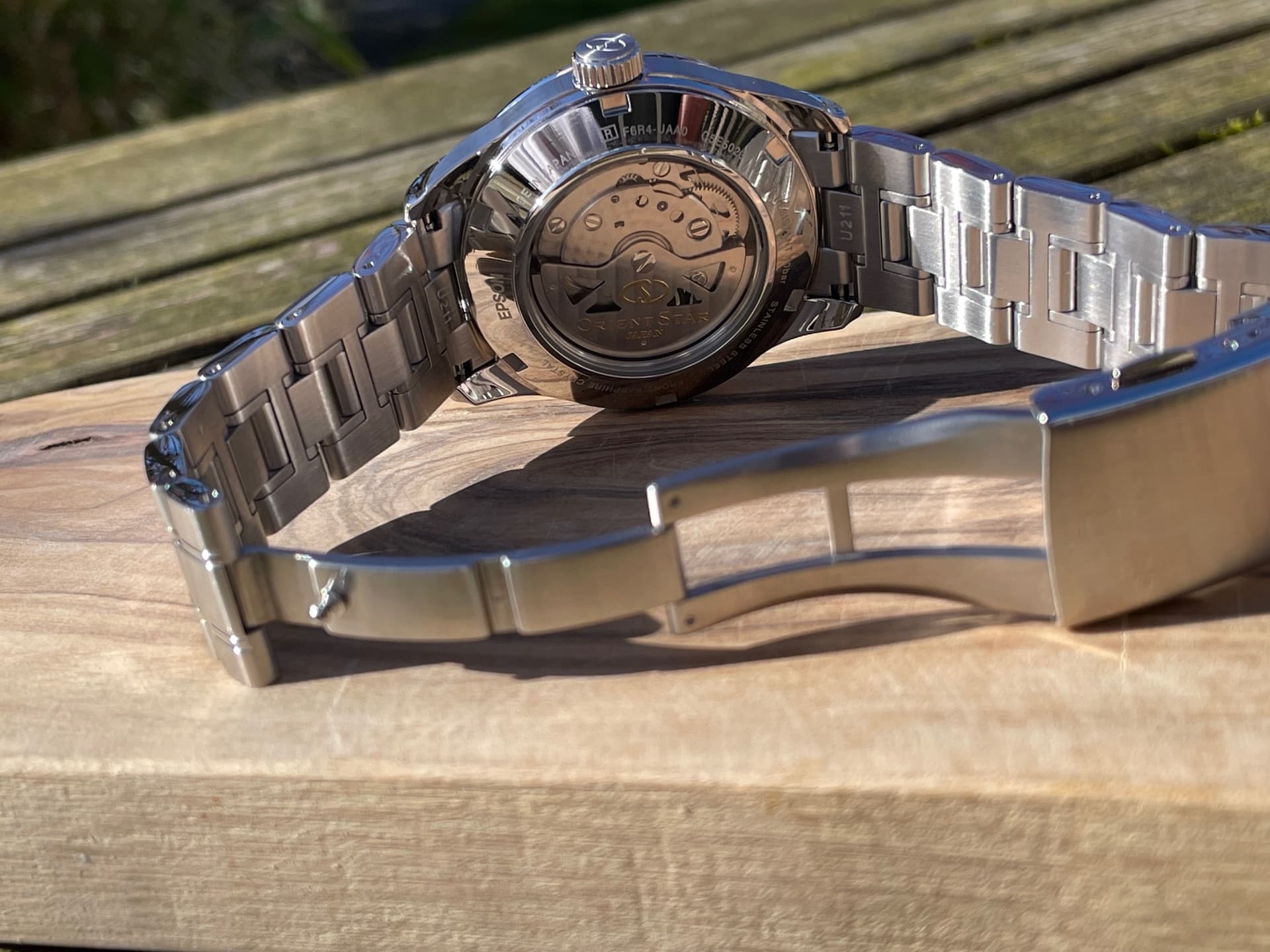 Goed. Hierbij een paar foto’s van mn nieuwe Orient Star die in de zon ligt te poseren.