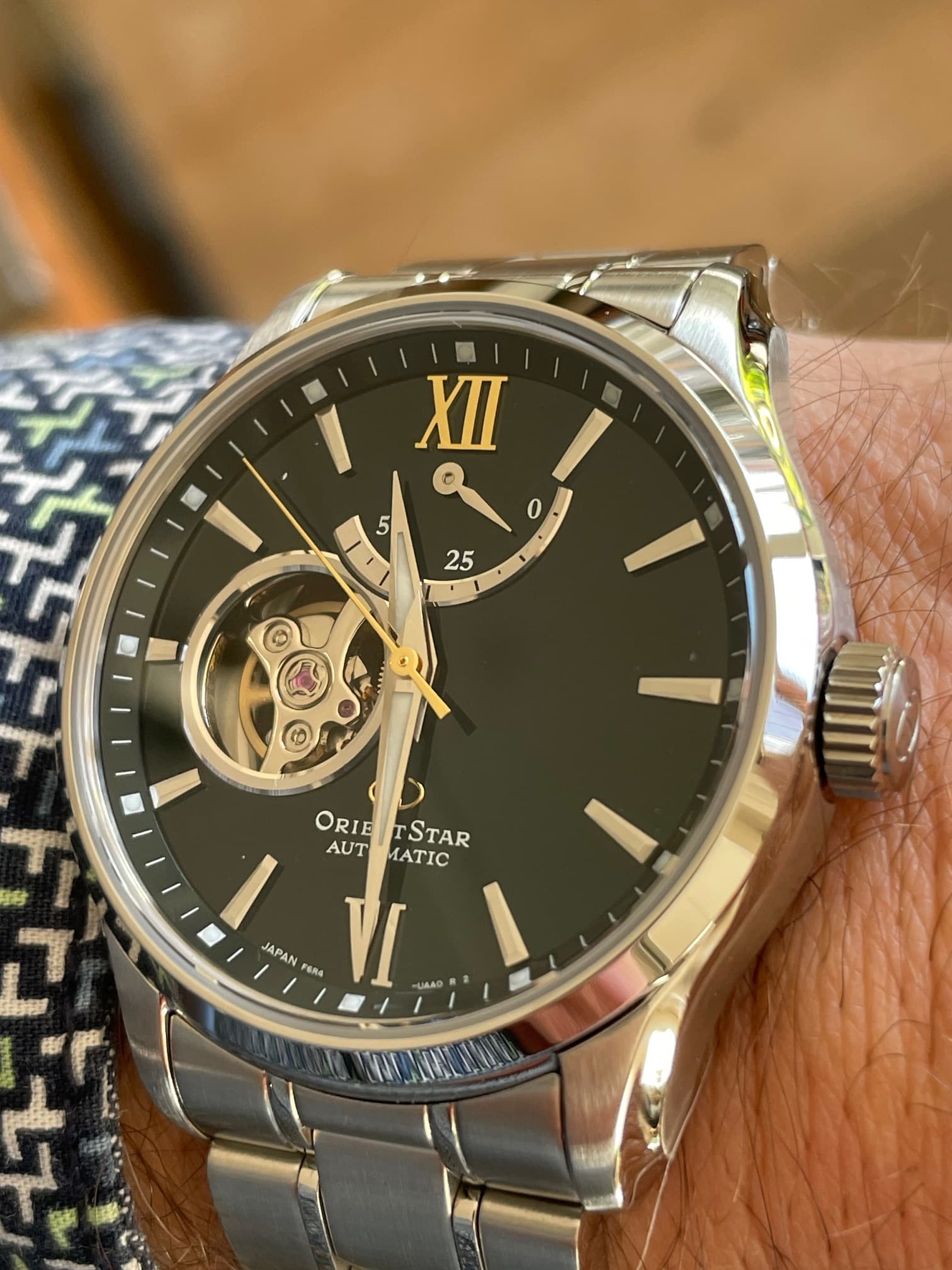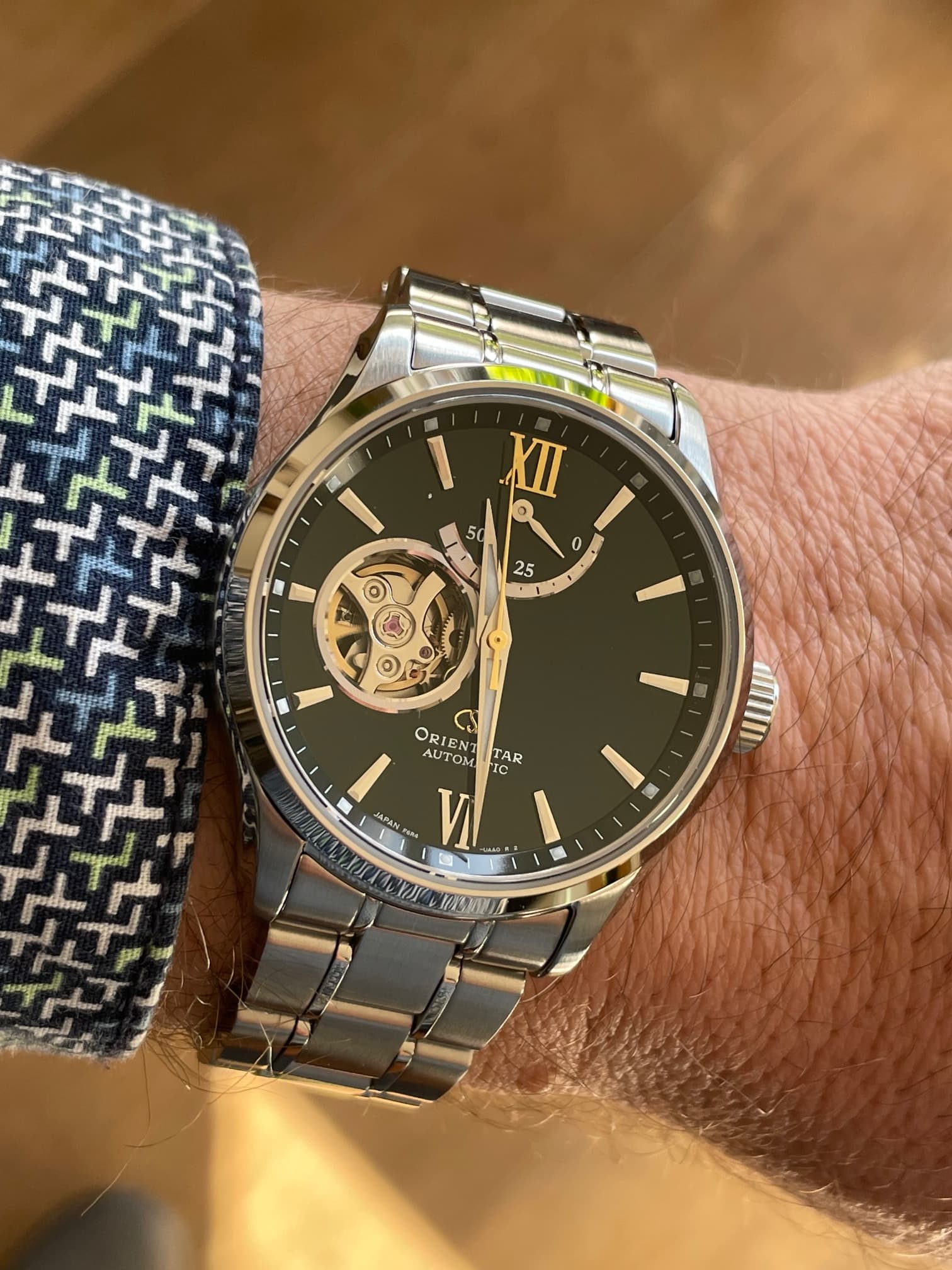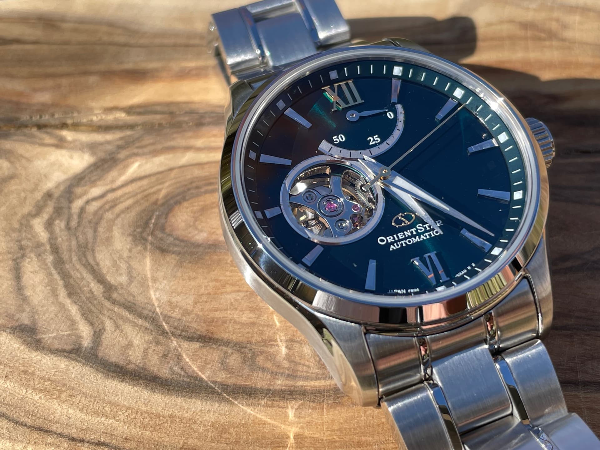 Goed. Hierbij een paar foto’s van mn nieuwe Orient Star die in de zon ligt te poseren.