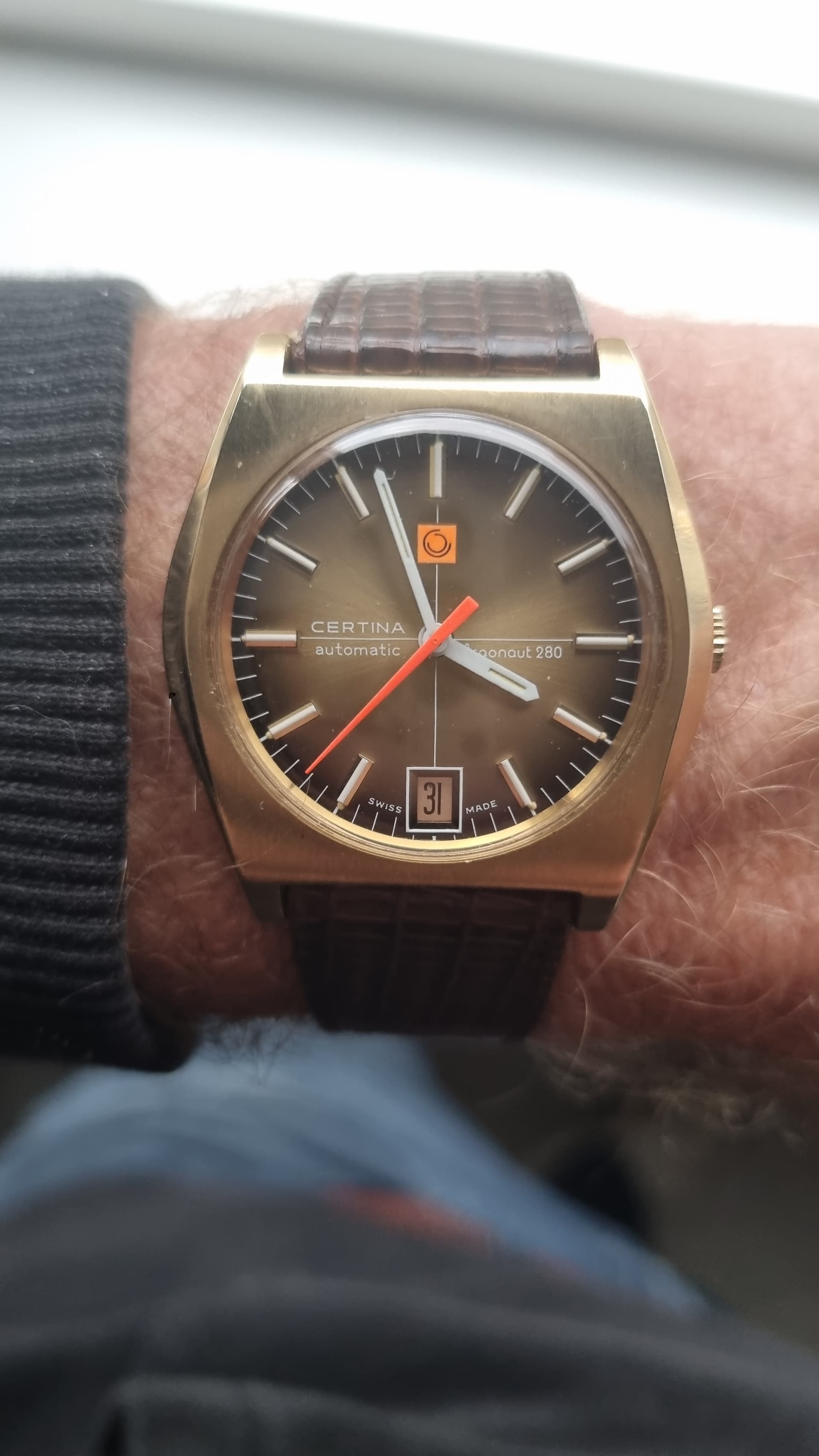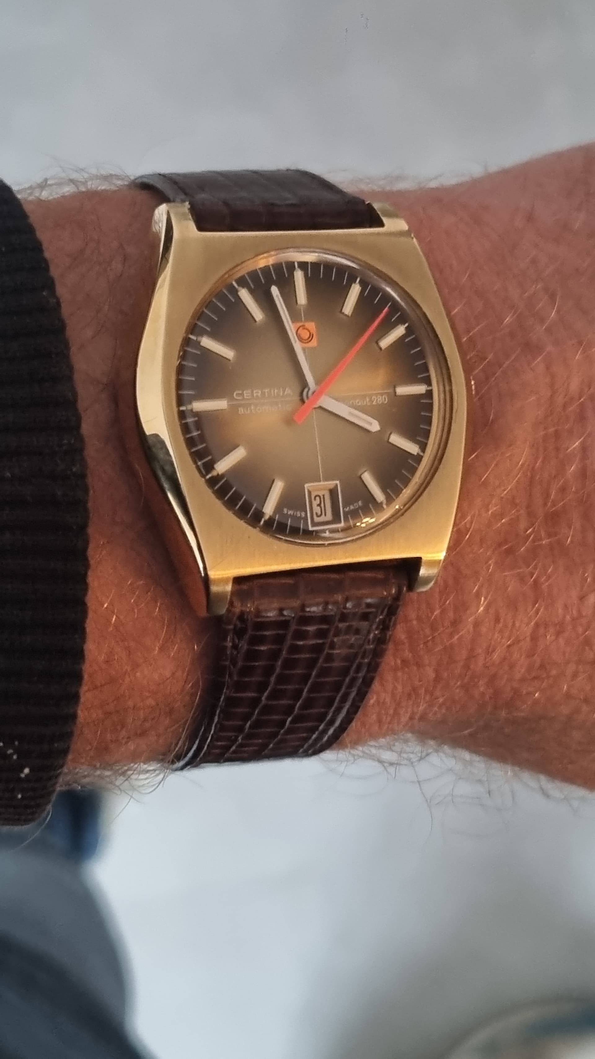 Bovenstaand verhaal was mijn eerste ervaring op hf. Mooie vriendschappen en contacten ontstaan en kletsen over een bijzondere hobby. Ik was al enige tijd op zoek naar een Certina argonaut uit de jaren 70. Deze week kwam hij binnen per post. Een funky horloge uit de jaren 70 waar je zo Studio 54 mee kon binnenlopen zonder dat de doorbitch je tegenhield.
