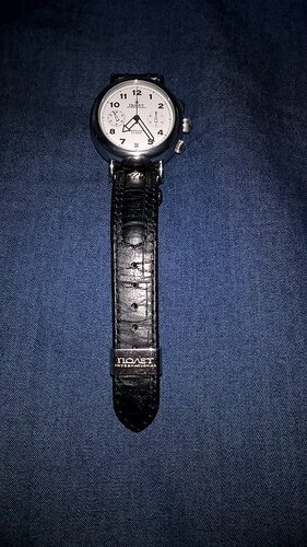 Als je niet de hoofdprijs betaald hebt, is 't echt een leuk ding! Komt inderdaad van Poljot International volgens de zichtbodem, en da’s al iets recenter. Zal nog geen decennia oud zijn in elk geval.