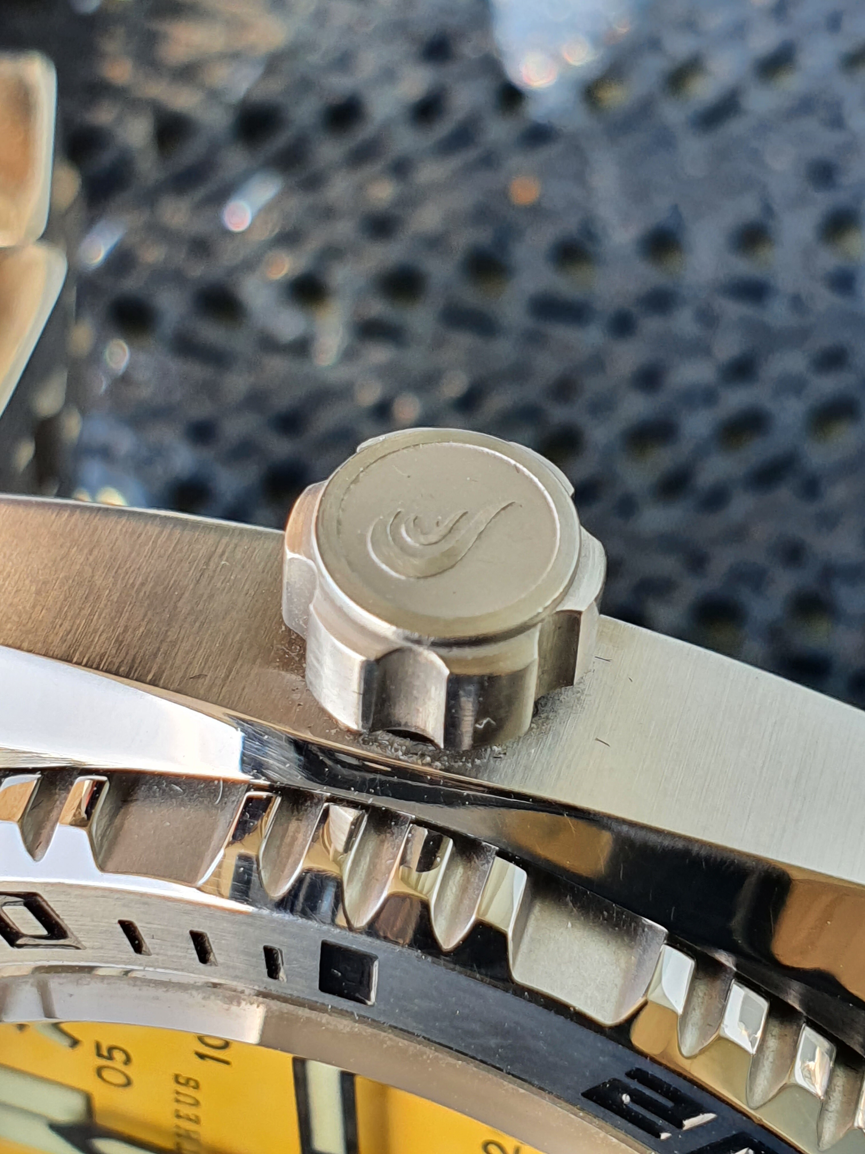 Een heliumventiel bevindt zich op de 9 uur-positie van de horlogekast