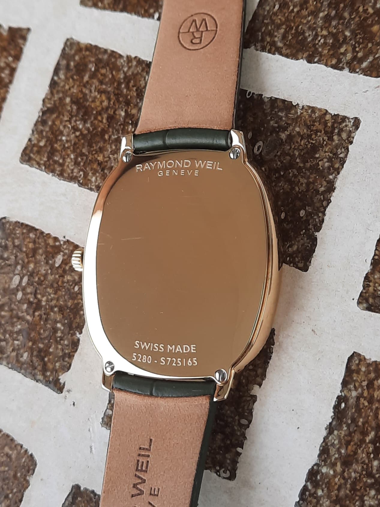 Met de kastmaten 31×36 mm en een dikte van slechts 5.1 mm past de RW prachtig op een 17.5 cm pols. Uiteraard saffierglas aanwezig.
