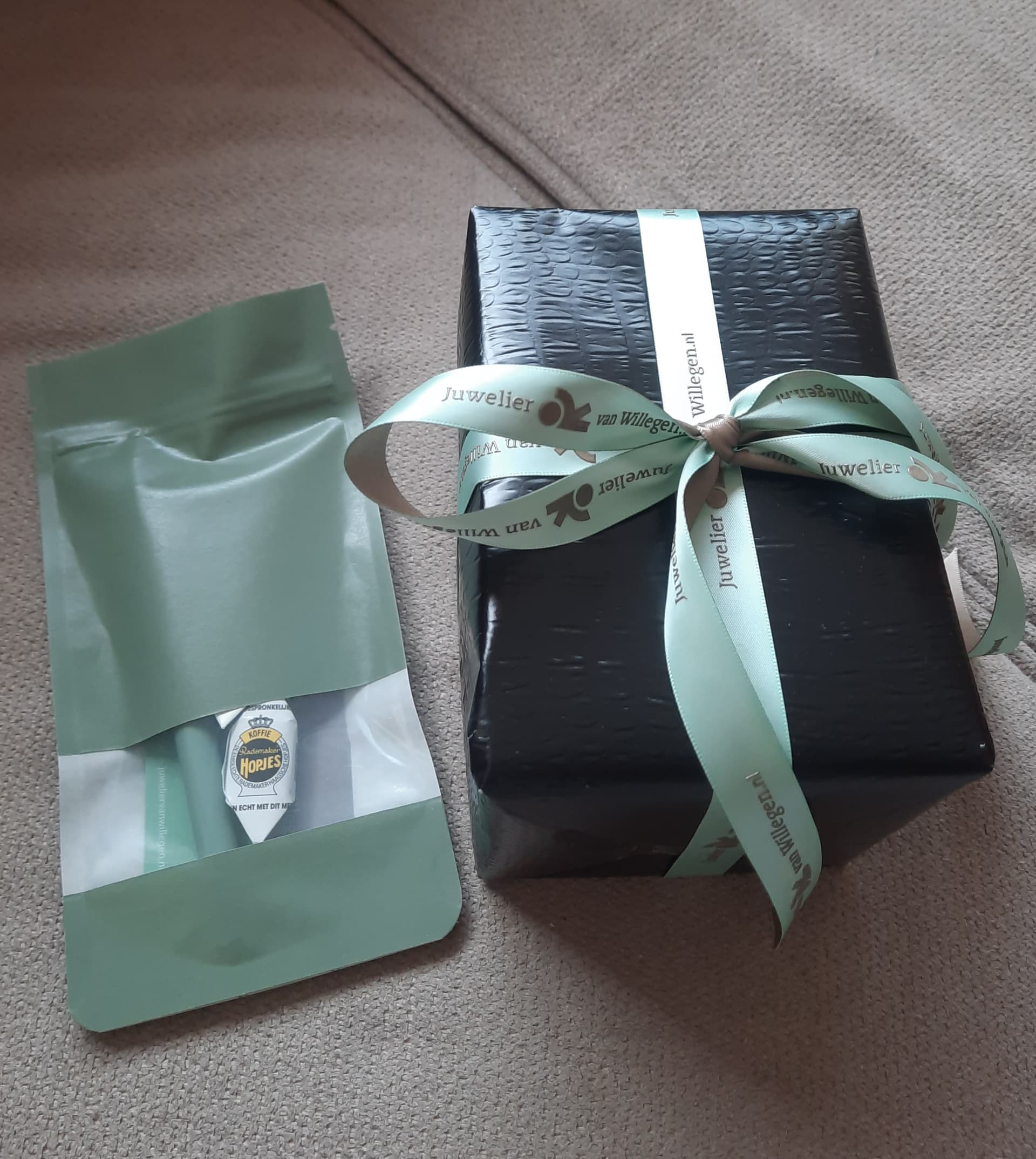Gisteren kwam hij dus binnen vanuit het Haagse, keurig verpakt en inclusief hopjes (één had ik al op) en pen.