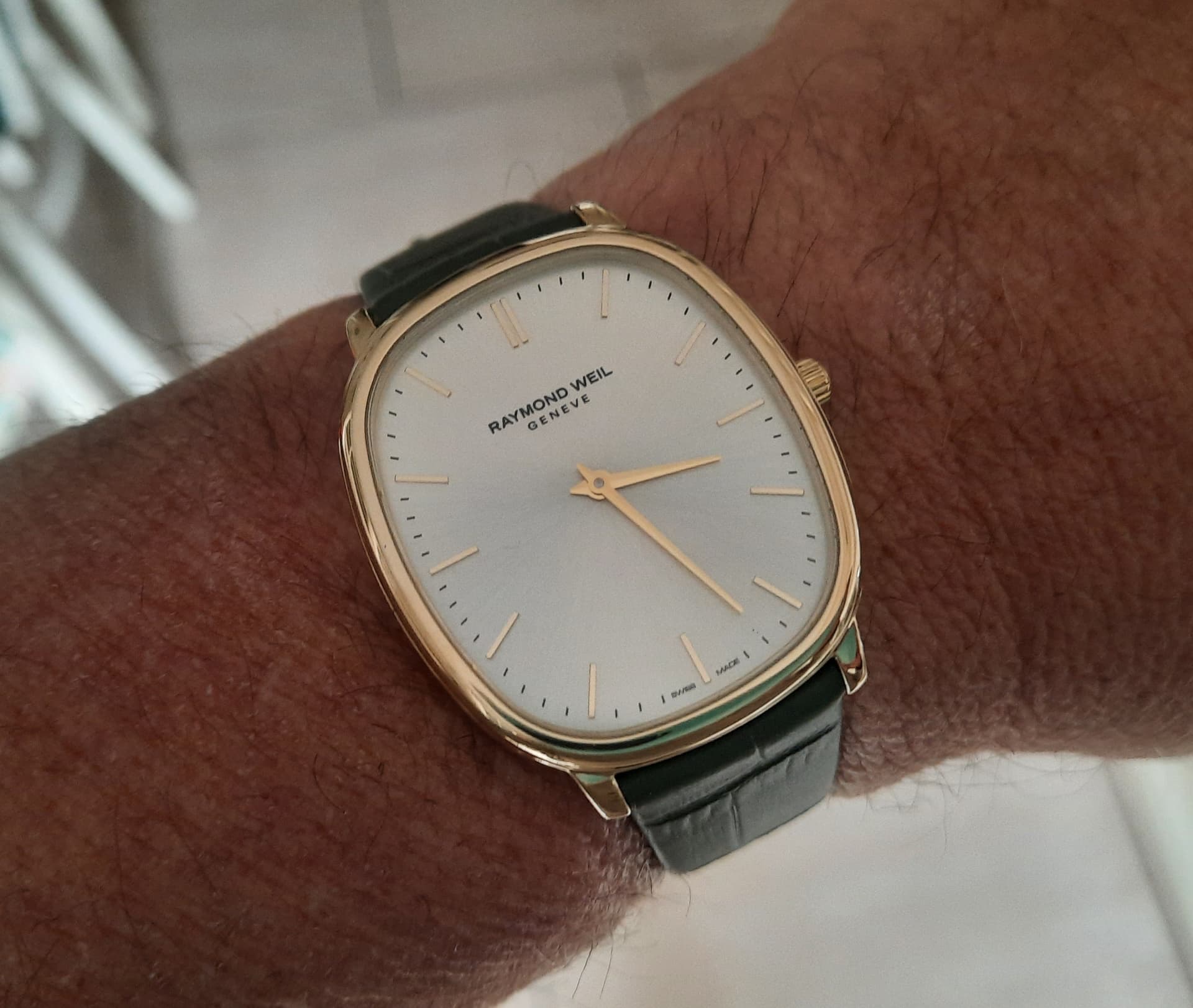 De mooie ovale vorm met de oud-zilveren dial icm de geelgouden pvd gecoate bezel en gouden indexen raakten bij mij de juiste snaar.