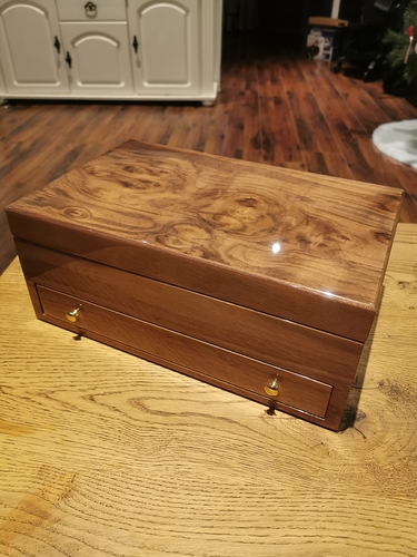 De kwaliteit sprak mij meteen aan en ik heb hem een berichtje gestuurd met mijn wensen qua uiterlijk en functionaliteit. Denk hierbij aan hoogglans gepolijste lak, gravering, kleur beslag, magneetjes, lade etc.