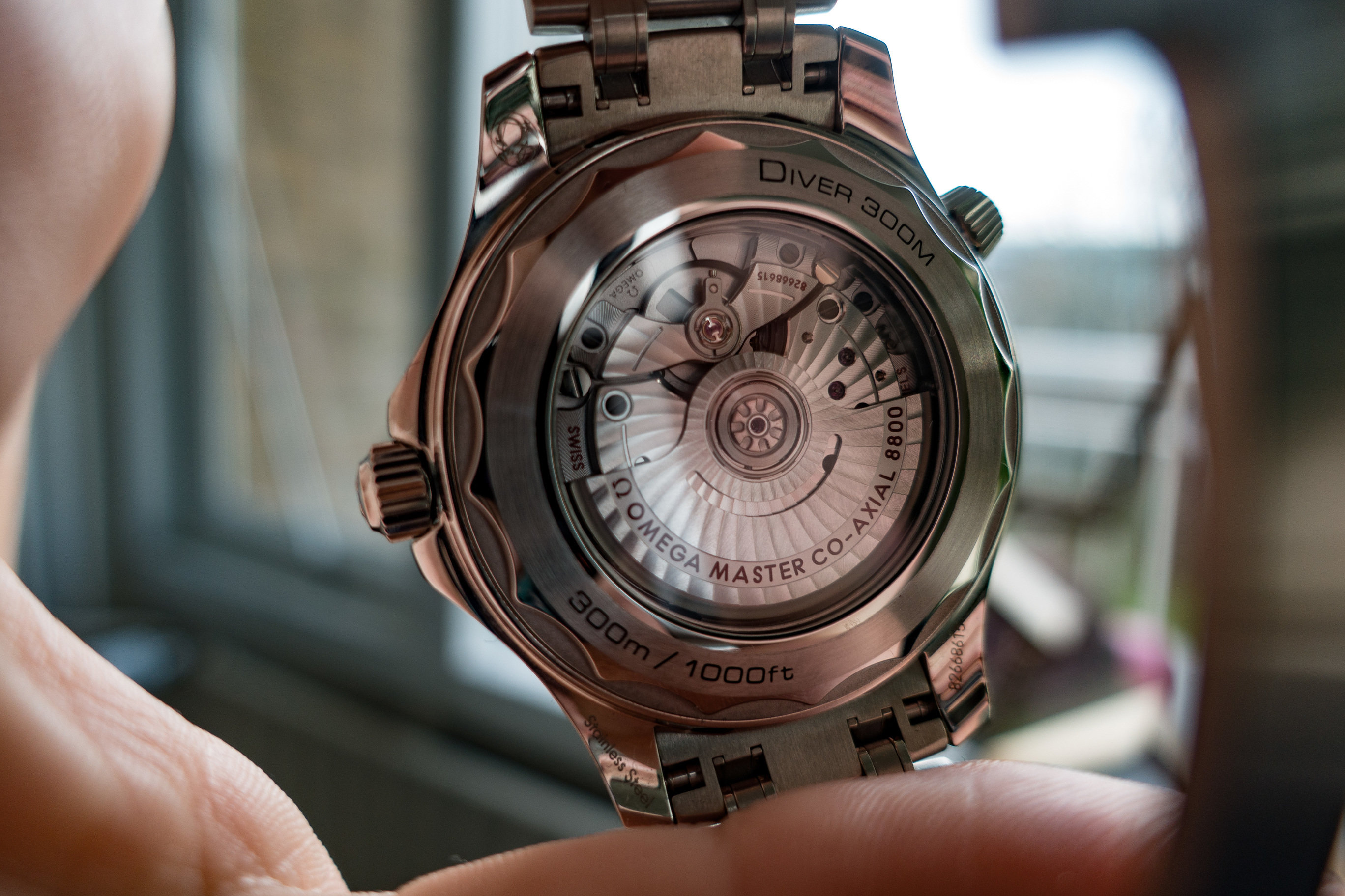 Uiteraard saffier glas dat aan beide kanten is ontspiegeld. Wat mij enorm aantrok aan de Seamaster is dat hij een prachtige display caseback heeft. Erg bijzonder voor een horloge dat tot 30-Atmos (300M/1000ft) onderwater bestand is. Helaas is het horloge lastig binnenstebuiten te dragen ;).