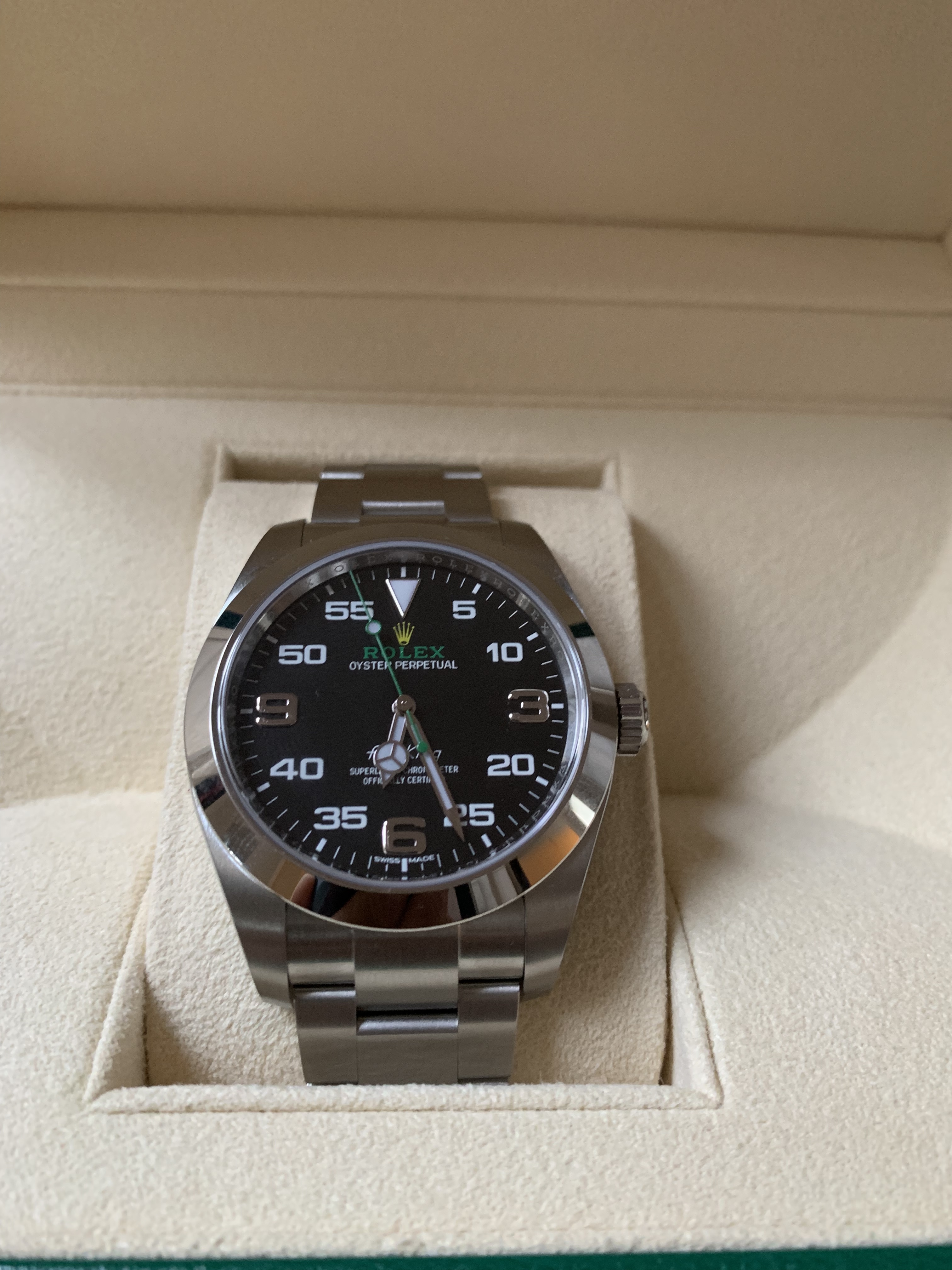 Tijden geleden ben ik bij SC geweest en mijn interesse uitgesproken voor een Air King of Explorer en vandaag een telefoontje gekregen dat de Air King op voorraad was. Eerlijk gezegd was ik allang vergeten dat ik SC had gevraagd om me te bellen als ze er een hadden… Toevallig was ik wel sinds een aantal dagen weer aan het zoeken naar uitbreiding op mijn collectie, het leek dus alsof het zo moest zijn,