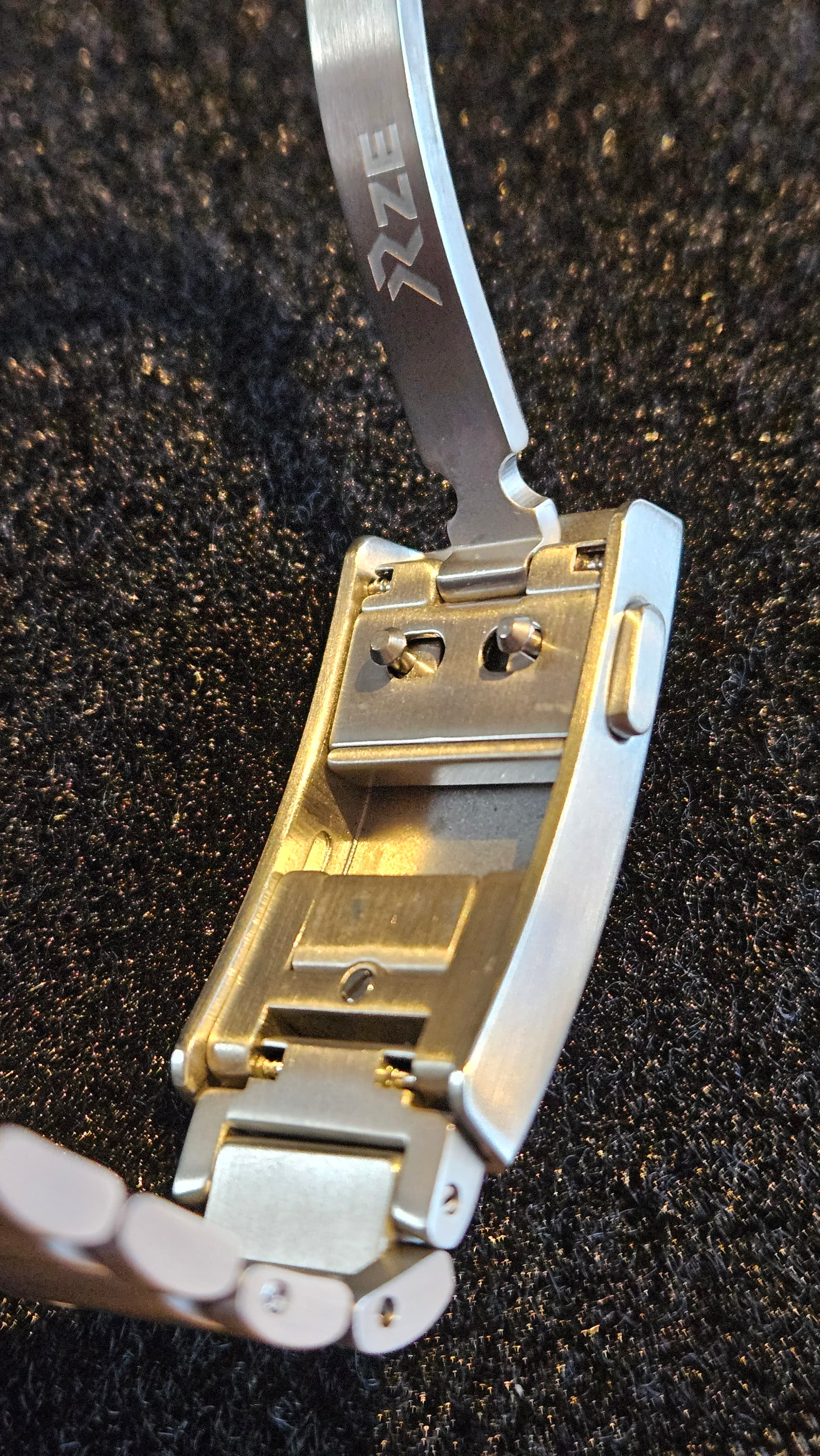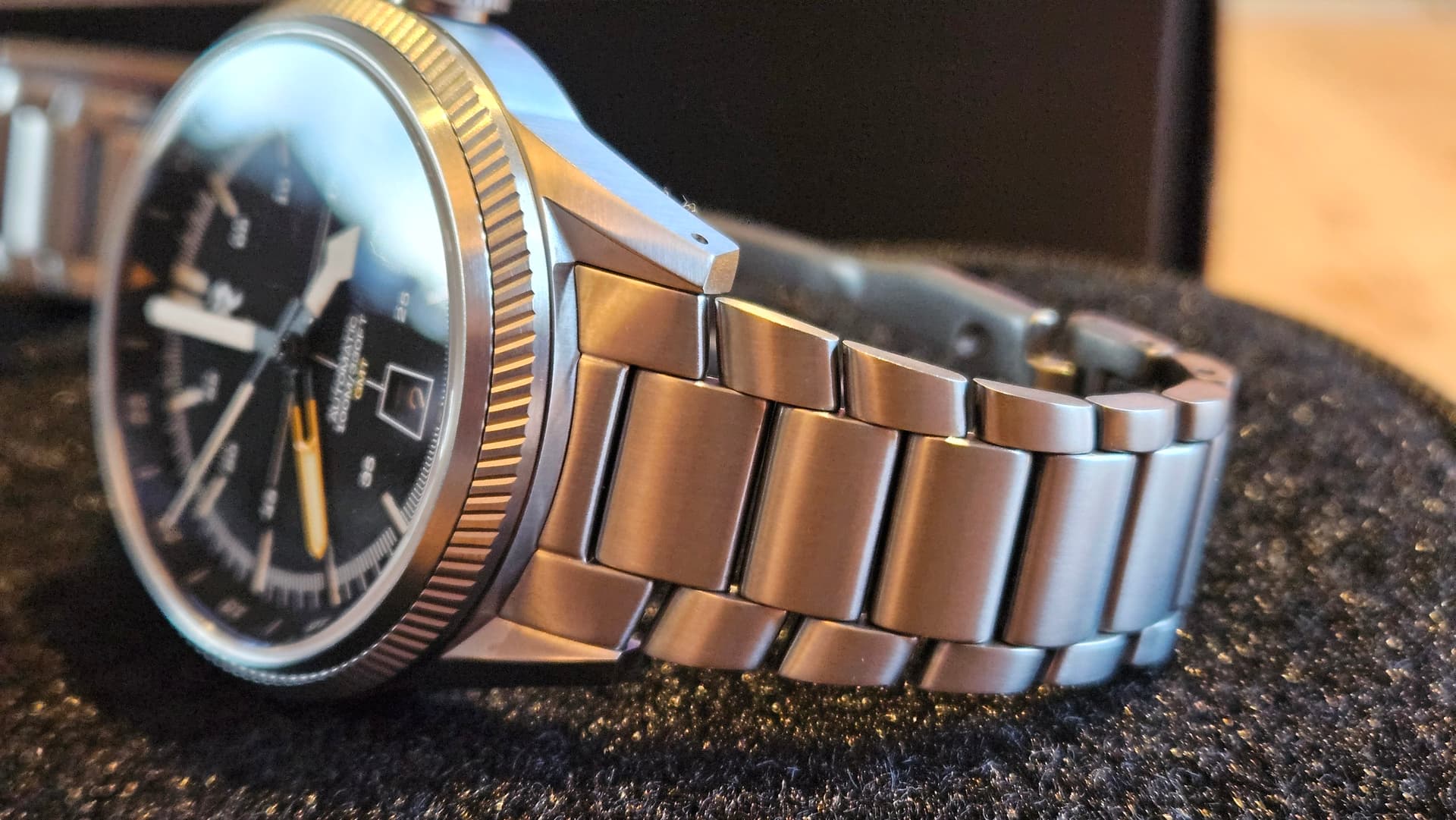 De kwaliteit is goed, de gebruikte materialen ogen hoogwaardig en de afwerking kan ik niets op aanmerken. De clasp heeft een makkelijk quick adjust functie, en wanneer je de tijd gaat instellen wordt je verrast door een gave verwijzing naar de luchtvaart. De as onder de kroon is voorzien van een rode afwerking, yay