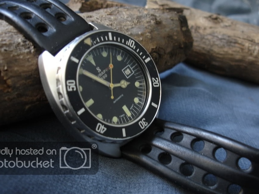 Zoals op onderstaande foto’s is te zien kwam deze band oorspronkelijk op een Scubapro 500.