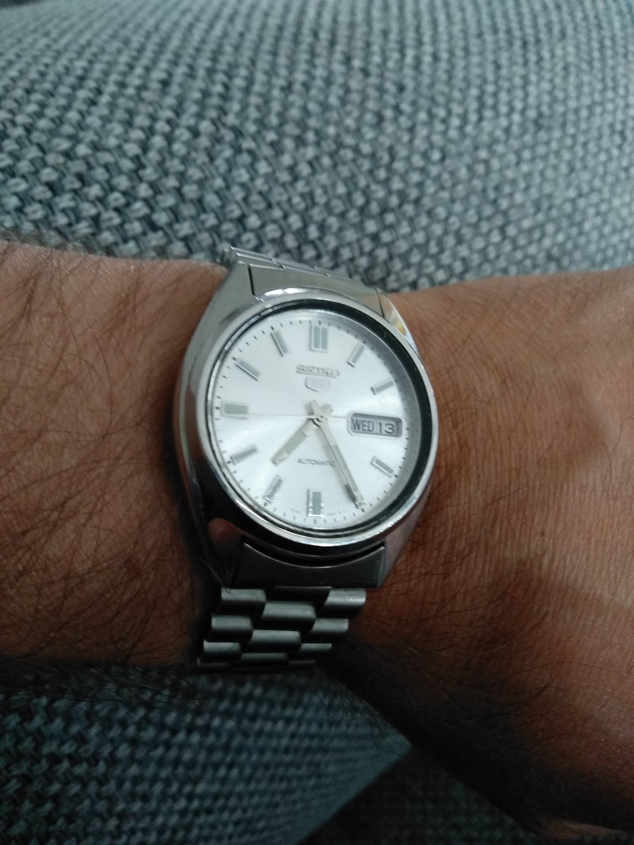 Een seiko 5 moest het worden, en zo geschiedde, de SNXS73.