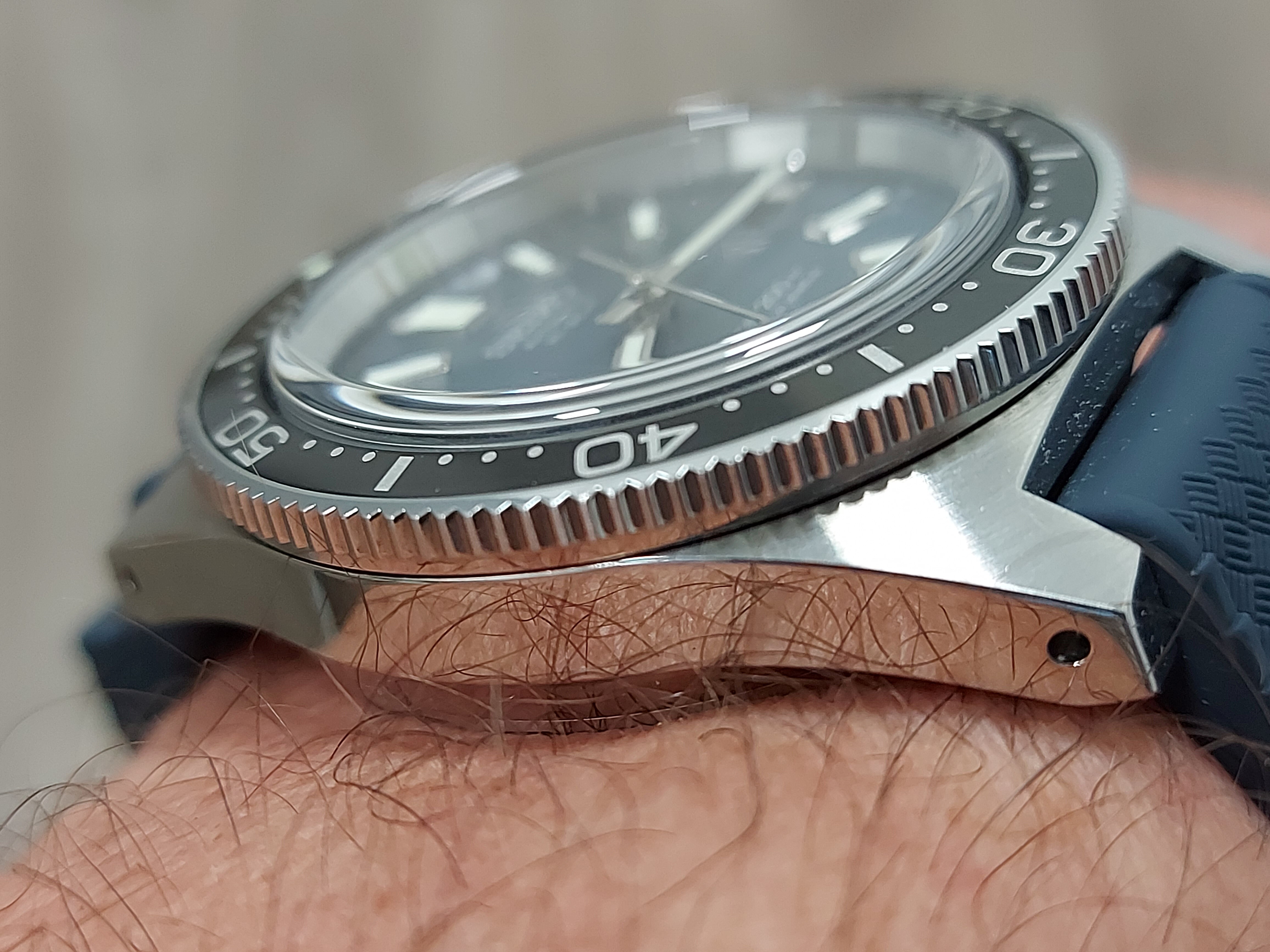 Maar wat is dat ding cool! HI-Beat, prachtige blauw / grijze plaat, sunburst. Een soort van GS uurwerk onder het deksel. De bekende kamikaze GS polishing van de kast.