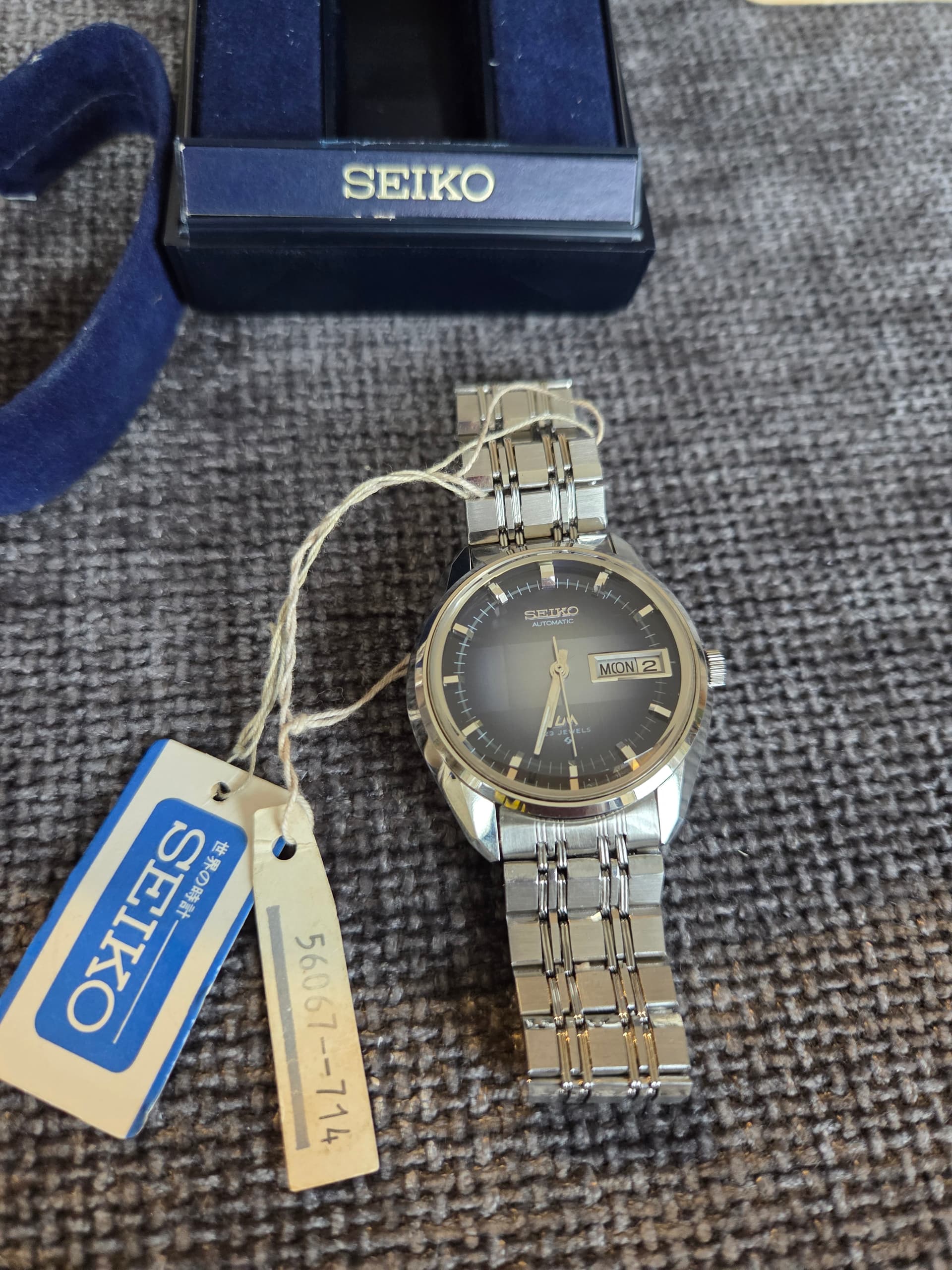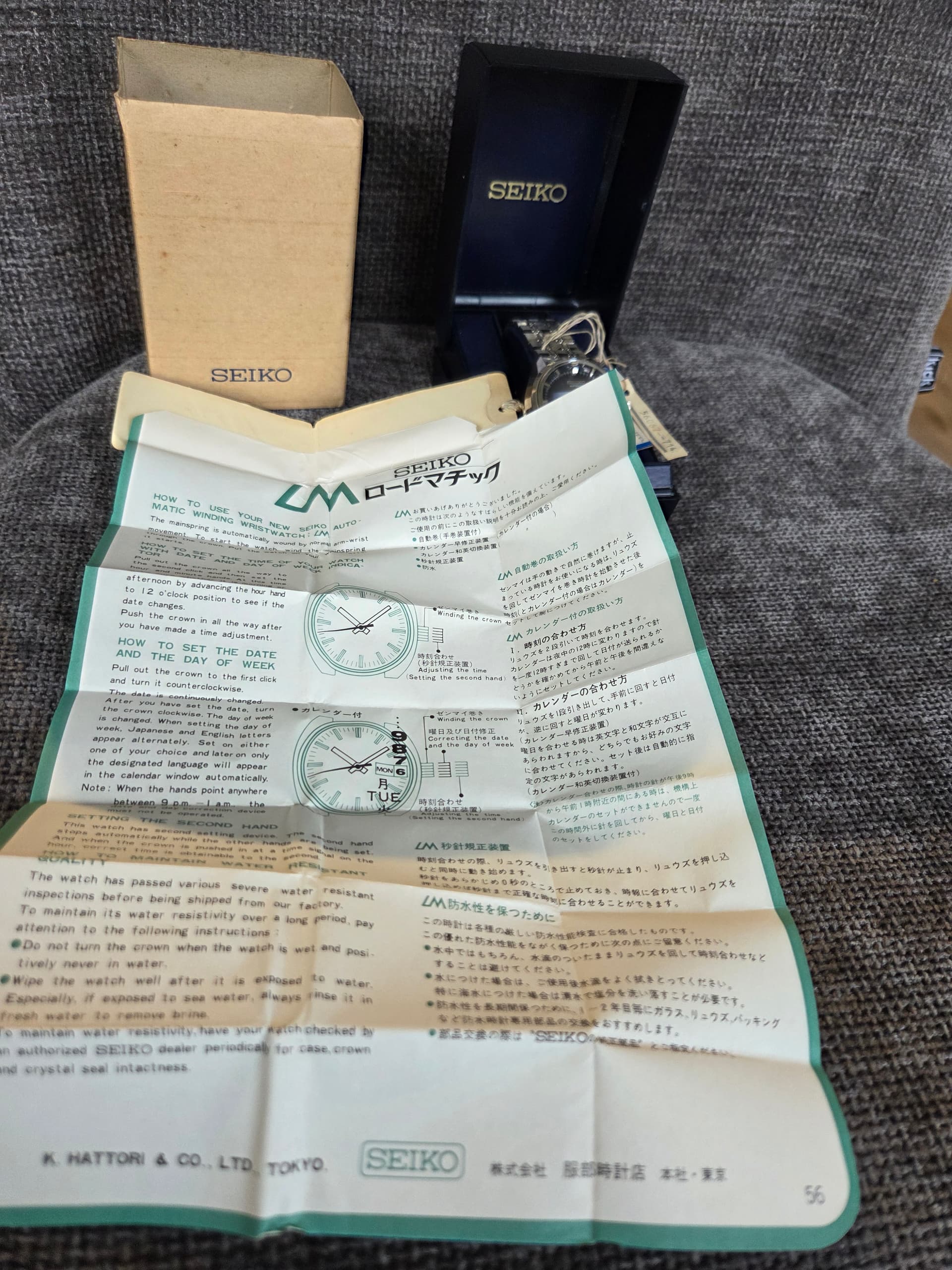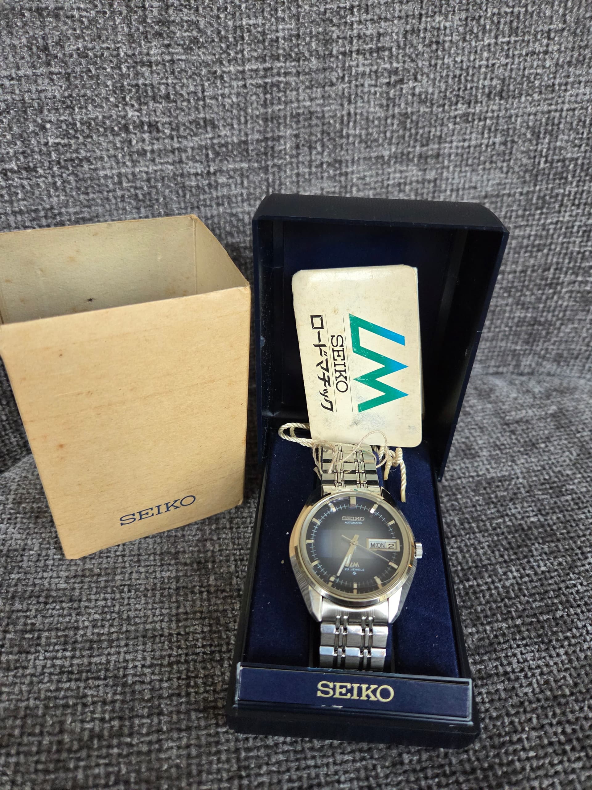 Al een geruime tijd was ik opzoek naar horloge uit mijn geboorte jaar. 2 maanden geleden kocht ik een seiko lm uit 1973 met een rode wijzerplaat. Ik was er verliefd op maar naast de gebruikerssporen deed de dag/datum het niet. Na lang nadenken of ik het zou laten repareren heb ik toch besloten om het horloge terug te sturen. Op een gegeven moment kwam ik een nieuwe Seiko LM tegen in nos staat. Nooit gedragen stond erbij en alle tags aanwezig. Deze is vandaag binnengekomen vanuit Singapore. De verkoper had een seiko doos bijgeleverd en er bij gezegd dat hij deze doos ergens anders had gekocht. In het echt is het horloge nog veel mooier dan op de foto. Ik heb mezelf verwend met deze vroege kerstcadeau