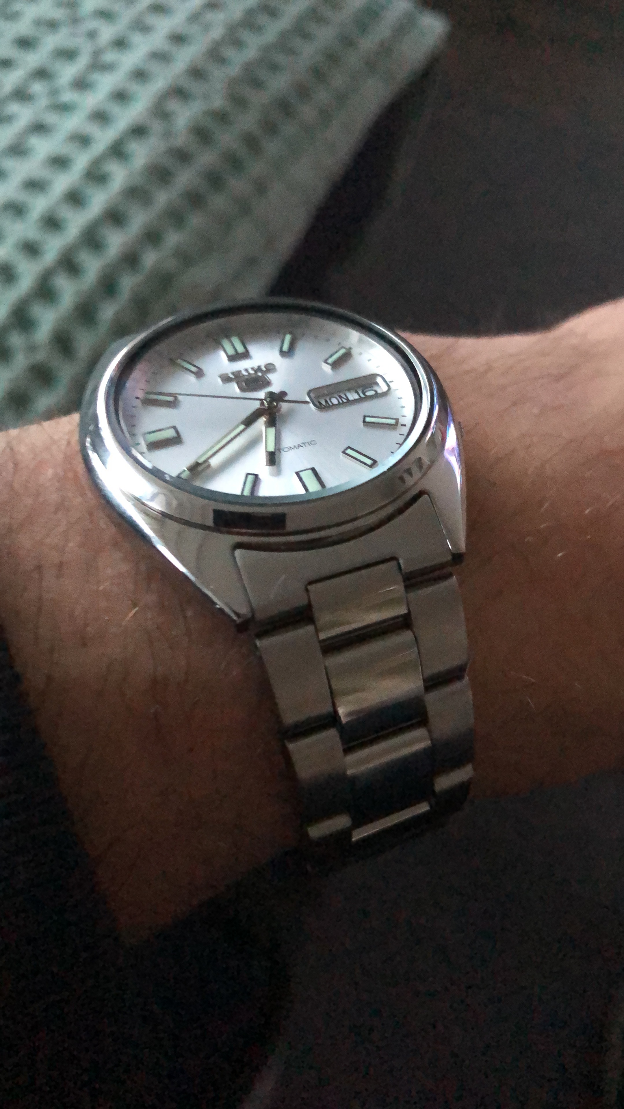 NA, helemaal uit Bangladesh, deze 7S26-0590, die eigenlijk van zichzelf al de ‘gewenste’ kenmerken heeft, zoals brushed case, en stalen bandje met glanzende links in het midden. Zal morgen in beter licht wat meer foto’s proberen te maken. Lijkt dus op de SNXS79, met wel nog meer subtiele verschillen.