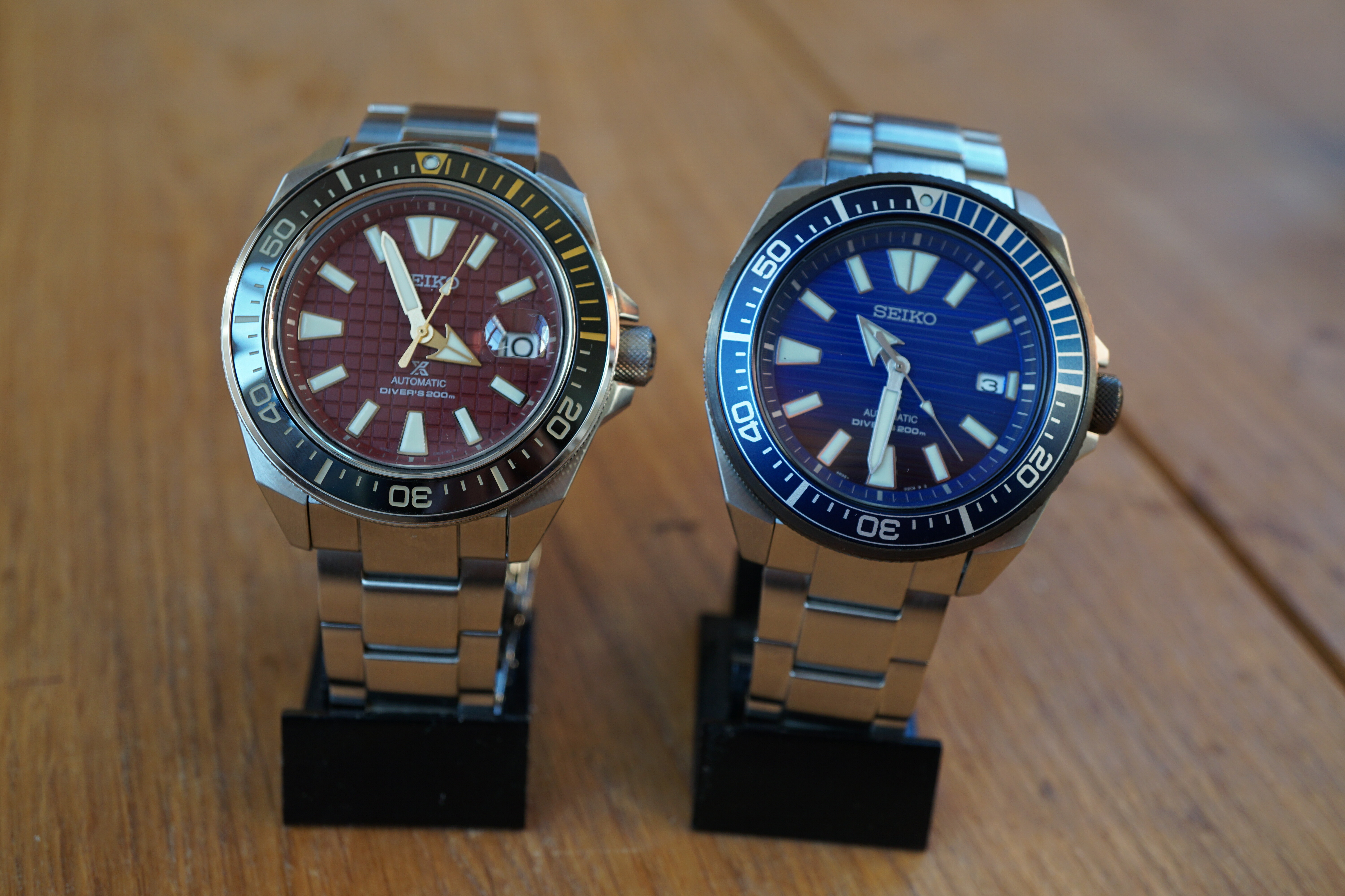 Sinds kort heb ik mijn Save the Ocean collectie verder aangevuld. Ik was in Kleve waar ik regelmatig kom. Meestal loop ik de juwelier voorbij, maar dit keer werd mijn blik naar de vitrine getrokken: mooi helder blauw lonkte naar mij. Het bleek de Seiko Save the Ocean Samurai SRPC93K1 (Humpback Whale) te zijn die ik uit de oudere serie nog graag wilde hebben. Zo maar in het wild. Tijdens het welbekende browsen kwam ik regelmatig de plaatjes tegen, onder andere hier: https://www.theseikoguy.com/save-the-ocean/, en https://timeandtidewatches.com/in-conversation-with-ocean-explorer-fabien-cousteau/ over de serie en achtergrond.