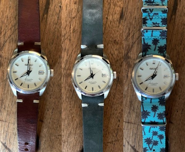 Mooie foto’s en mooie leren banden. Wat krijgt dit horloge een andere smoel door die leren bandjes.