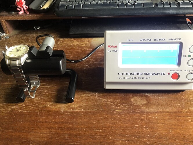 De metingen van de Weishi aan de SDGM001 waren onrustbarend: +54 seconde per dag en een amplitude van 183 graden zijn ver beneden de maat, en met een beat error van 0,6 ms valt te leven maar is evenmin optimaal. Een veel voorkomende oorzaak van dergelijke afwijkingen is magnetisme van het uurwerk. De Lepsi app (aanrader!) op mijn iPhone detecteerde geen magnetisme, dus de eveneens via Amazon gekochte demagnitizer kon op de plank blijven liggen.