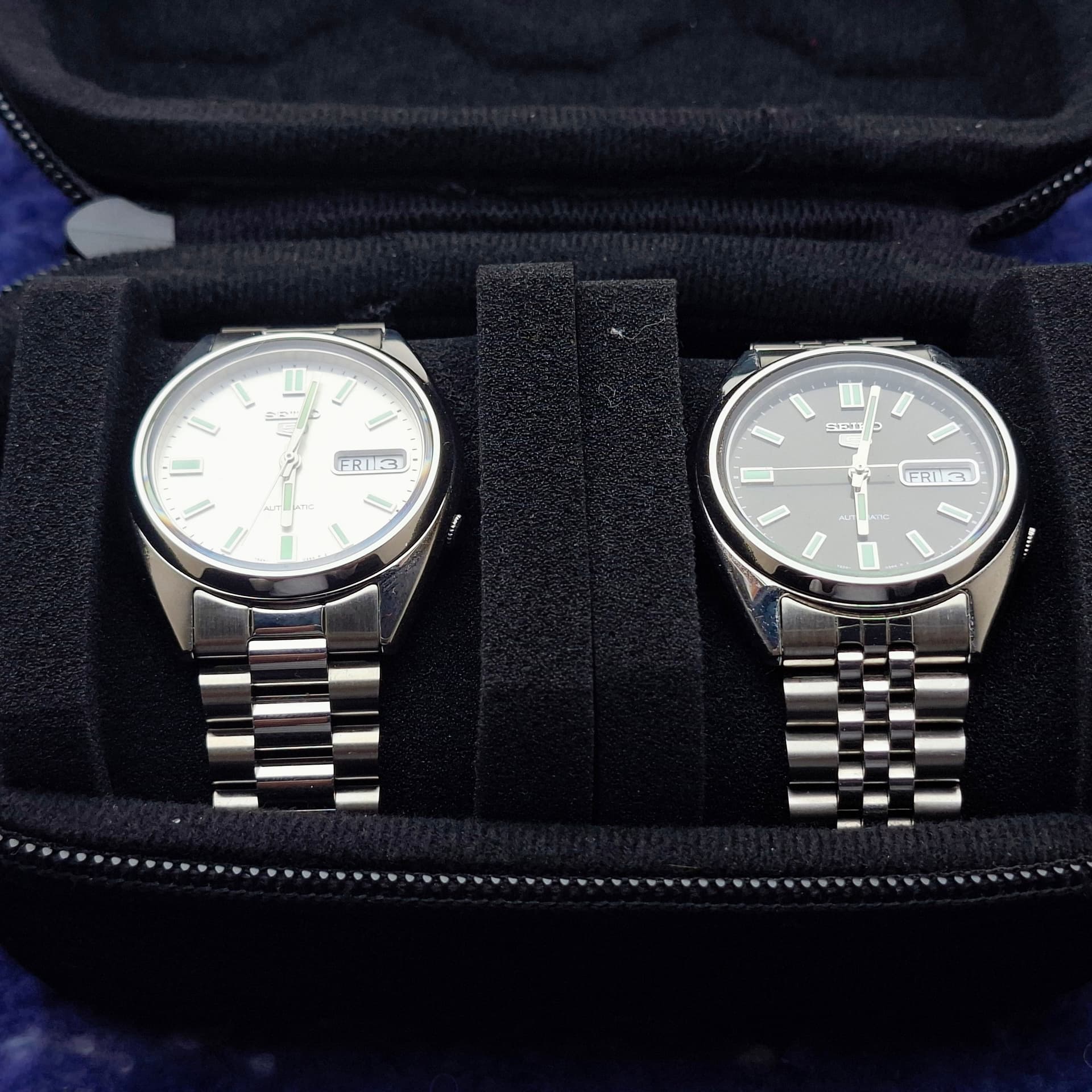 Ik kreeg vrij snel de gedachte dat de SNXS73 er ook moest komen. Deze was (is?) gelukkig nog steeds als NOS te krijgen bij Rob. Deze besteld, inclusief saffier upgrade en de dunne caseback. Op hetzelfde moment heb ik ook van Uncle een bijpassende bracelet besteld.