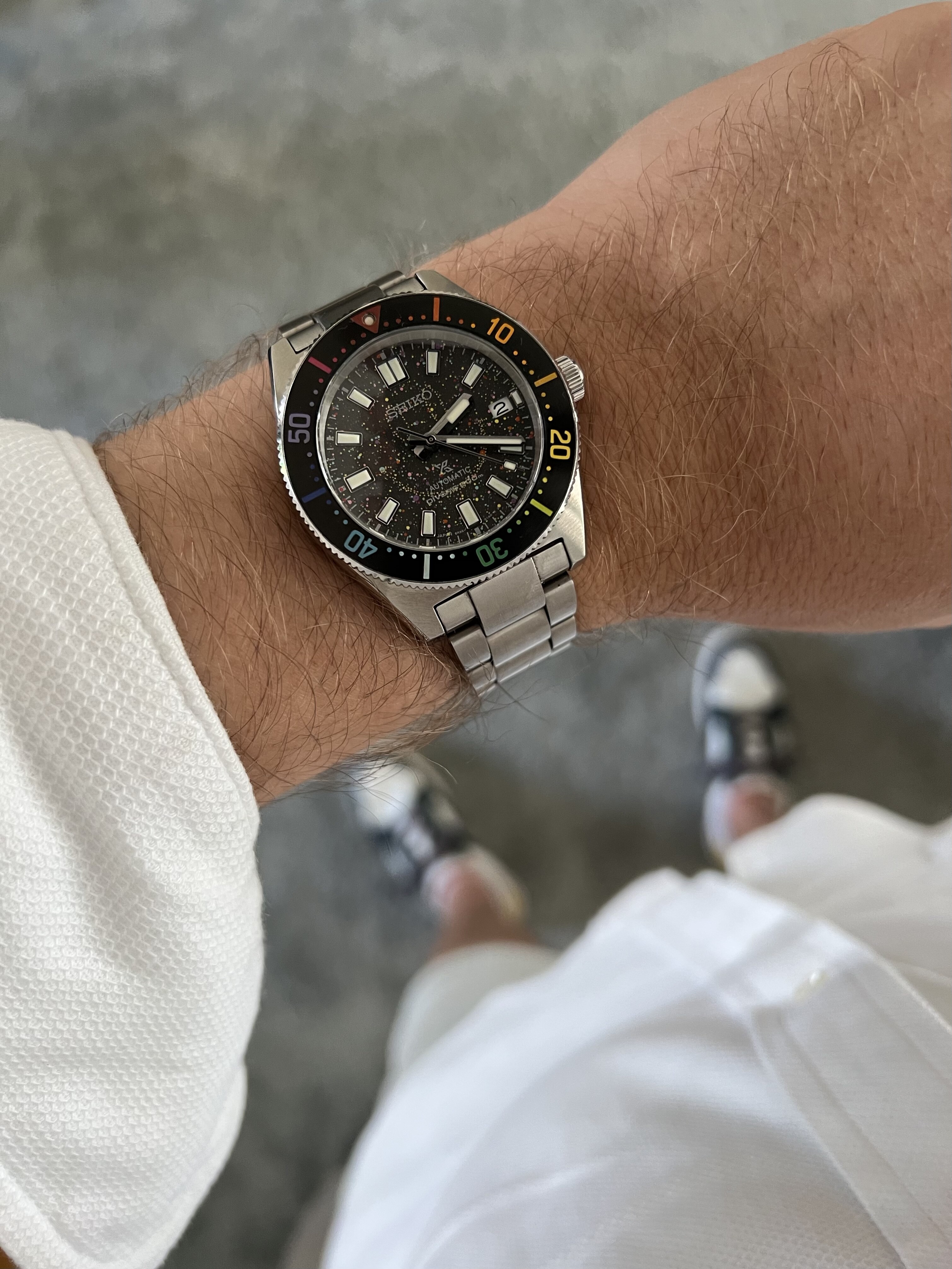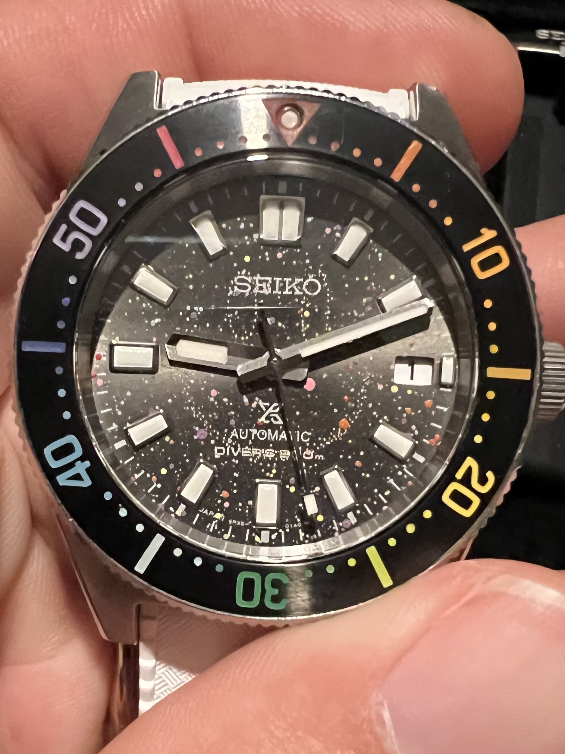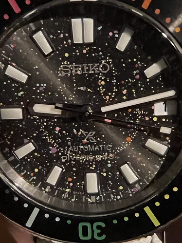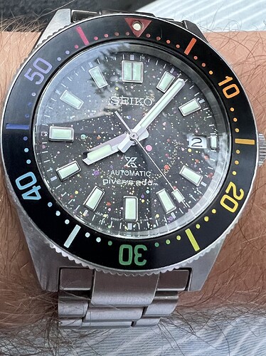 Kort na mijn jubileum maakte the Dial artist bekend dat hij weer custom orders aanneemt. Ik wist toen waar mijn gratificatie naar toe zou gaan. Het is een spb143 geworden met gradient rainbow bezel en een galaxy dial.