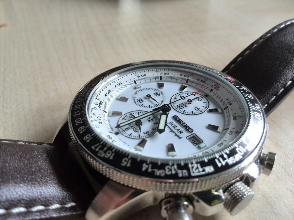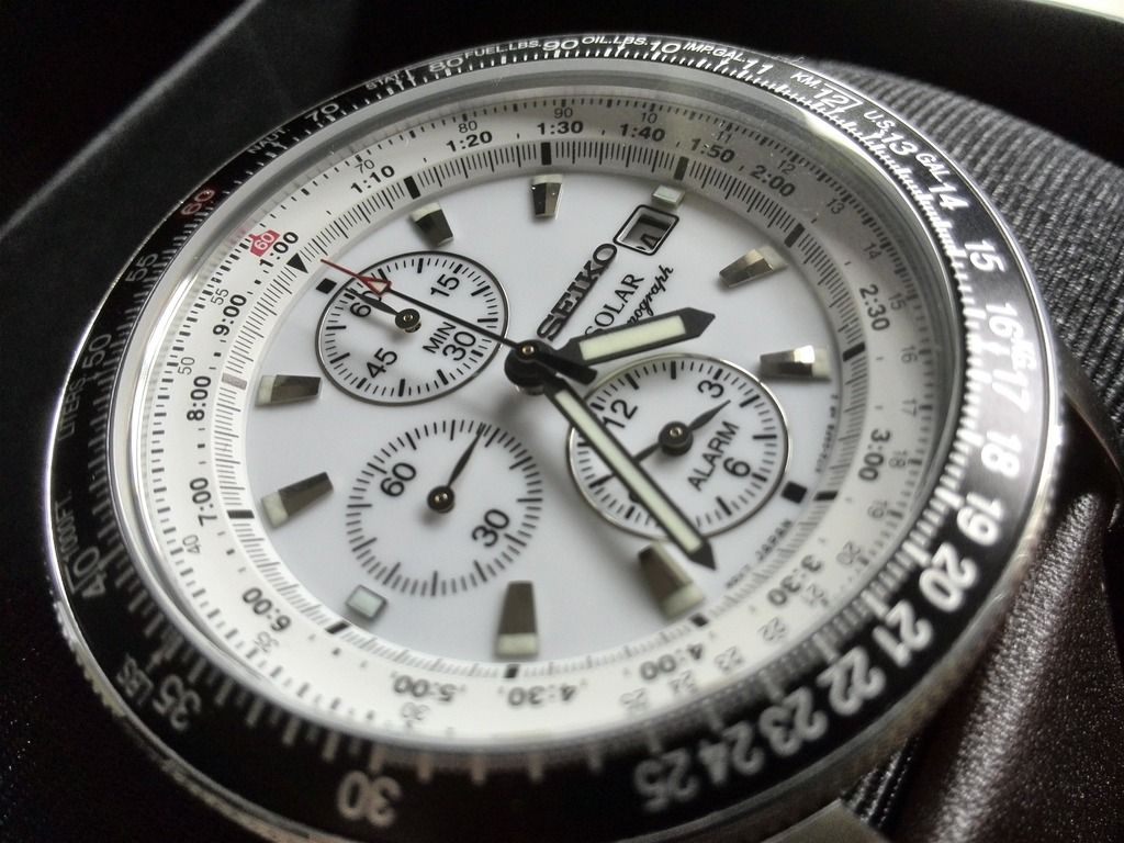 Ik wilde al een hele tijd een horloge met een witte wijzerplaat en een zwarte rekenschijf bezel (geen idee hoe het precies heet). En dat is precies wat deze Seiko heeft, ook nog eens Solar, wat ook leuk is