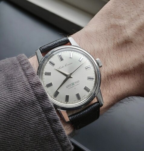 Met de “water 50 proof” tekst op de wijzerplaat en het zeepaard logo op de achterkant onderscheiden de waterdichte versies zich van de andere Cronossen. Het horloge werd door Seiko zelf als duikhorloge aangeprezen maar zonder lumen en bezel was het nog niet een praktische duiker. Er was laatst nog een hele discussie daar over op het forum, wat nou het eerste duikhorloge was en in die discussie zal ik me hier verder dus niet mengen