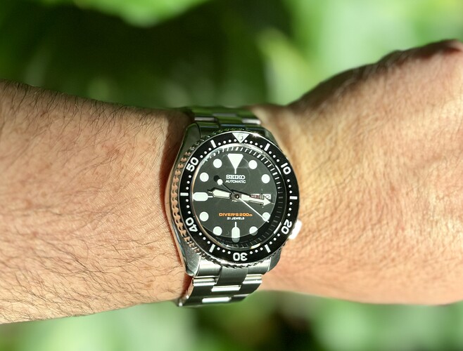 De Seiko SKX005J is voor mij absoluut een icoon, het heeft ervoor gezorgd dat duikhorloges ongekend toegankelijk en populair zijn geworden. De vorm is prachtig en tijdloos, en een zwart horloge had ik nog niet. Er is een saffier glas ingezet, met het facet en transparante AR-coating om de uitstraling van het origineel te behouden. Er zit een Miltat/Strapcode armband op, welke de kwaliteit van het horloge wat verder omhoog haalt. Ik ben er erg blij mee.