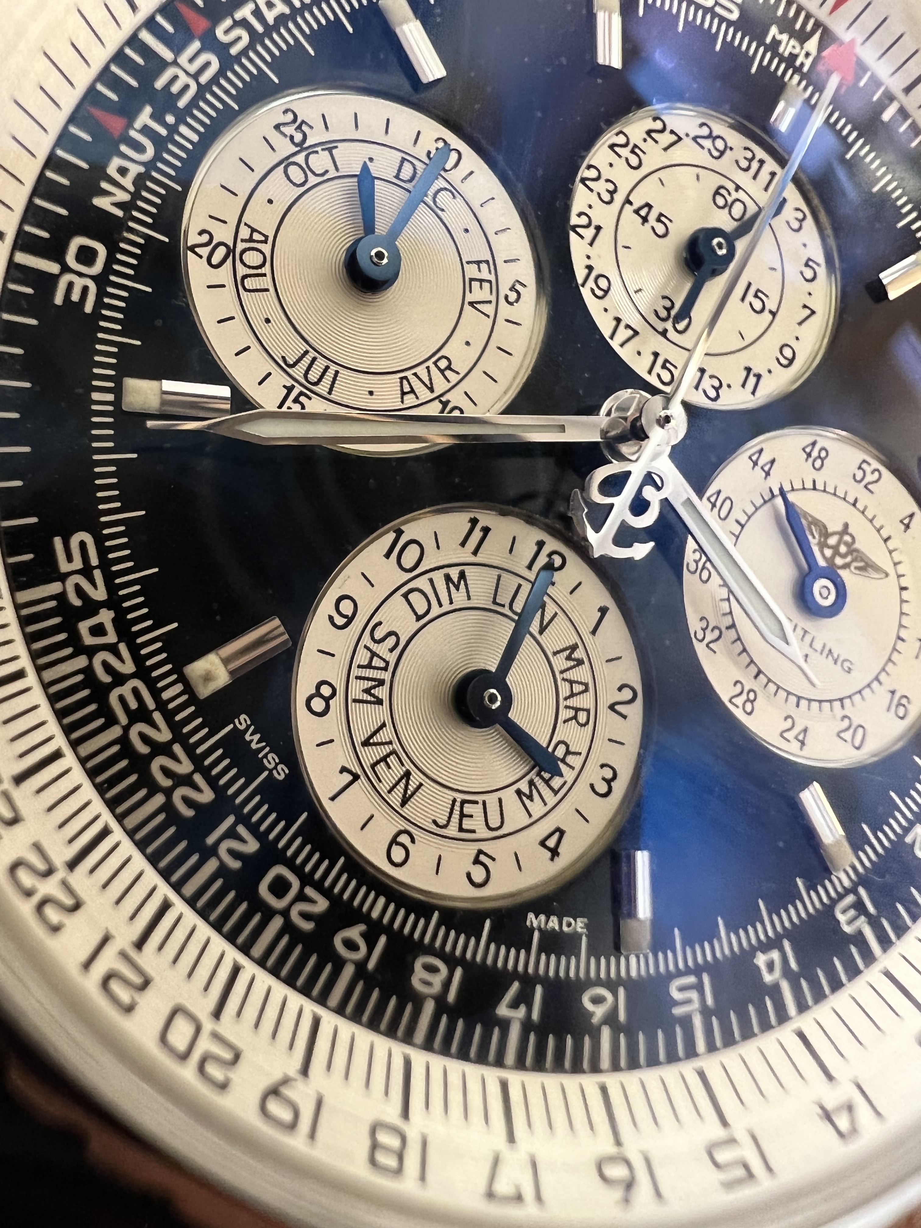 Gefeliciteerd met je Navitimer, zeker een drukke wijzerplaat maar alles staat erop wat je nodig hebt voor je werk en hij staat je netjes om de pols wat wil men nog meer . Wens je veel draagplezier en hoef je niet meer na te denken in welke week we leven
