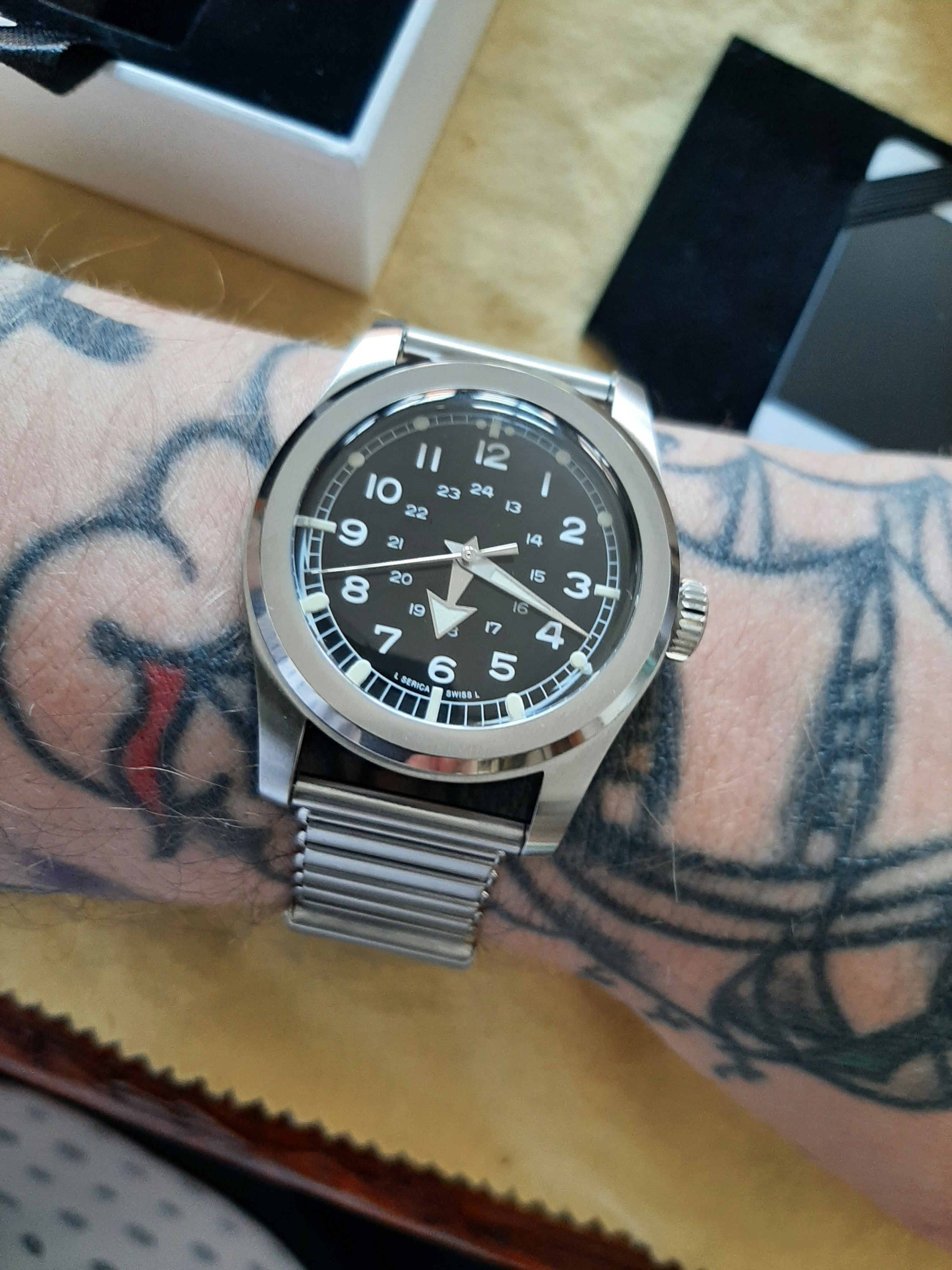 Ik wilde een field/military watch en een Hamilton heeft de revue al gepasseerd. Een Smiths vond ik wat omslachtig te verkrijgen. Een Longines Heritage Military Watch vind ik alsnog prachtig, maar wil wel een klein beetje waterdichtheid dus deze viel ook af.