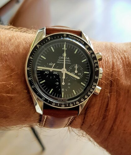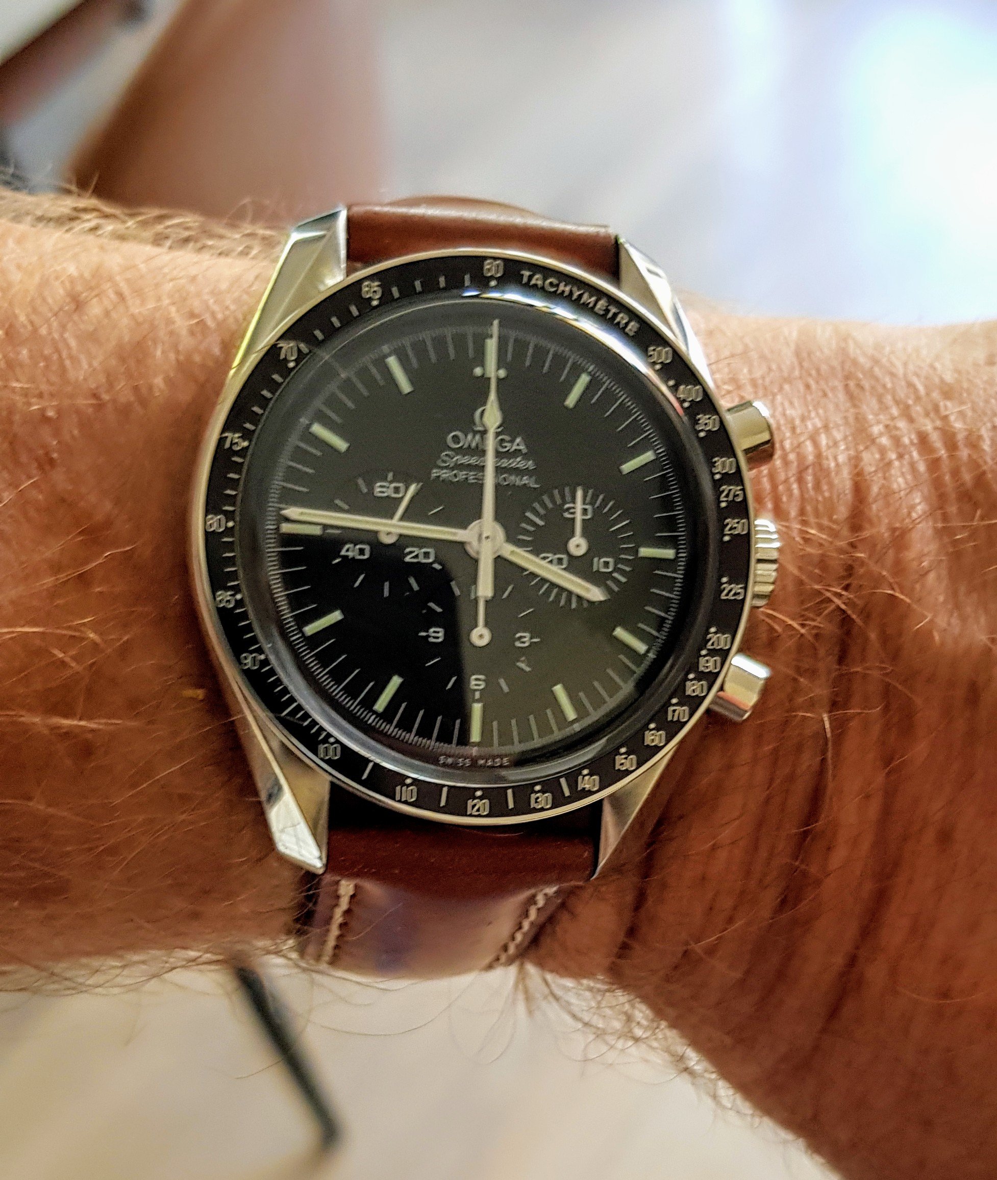 Zoals meer speedmaster eigenaren heb ik best een tijdje getwijfeld tussen hesalite en saffier. De krasbestendigheid, open caseback en het opgelegde logo van de saffieren versie wonnen het uiteindelijk nipt van de band zonder polished links en het mooier ogende “glas” van de hesalite. Van deze keuze heb ik zeker nog geen spijt.