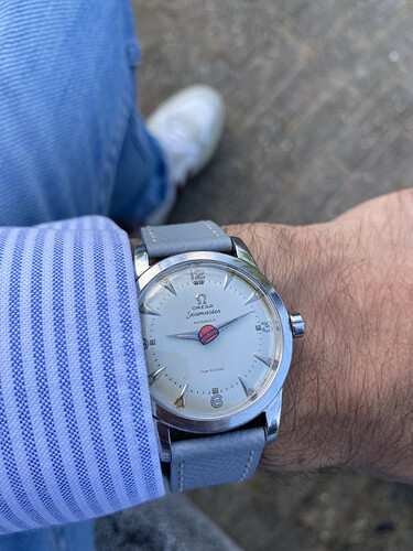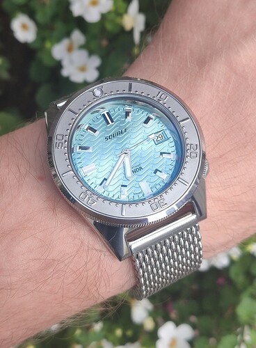 De dial is IRL zoals verwacht en gehoopt, en de combi met lichtblauwe strap is De kastvorm is mooi. Ben met deze meer geneigd om het met een 2 piece horlogeband te dragen.