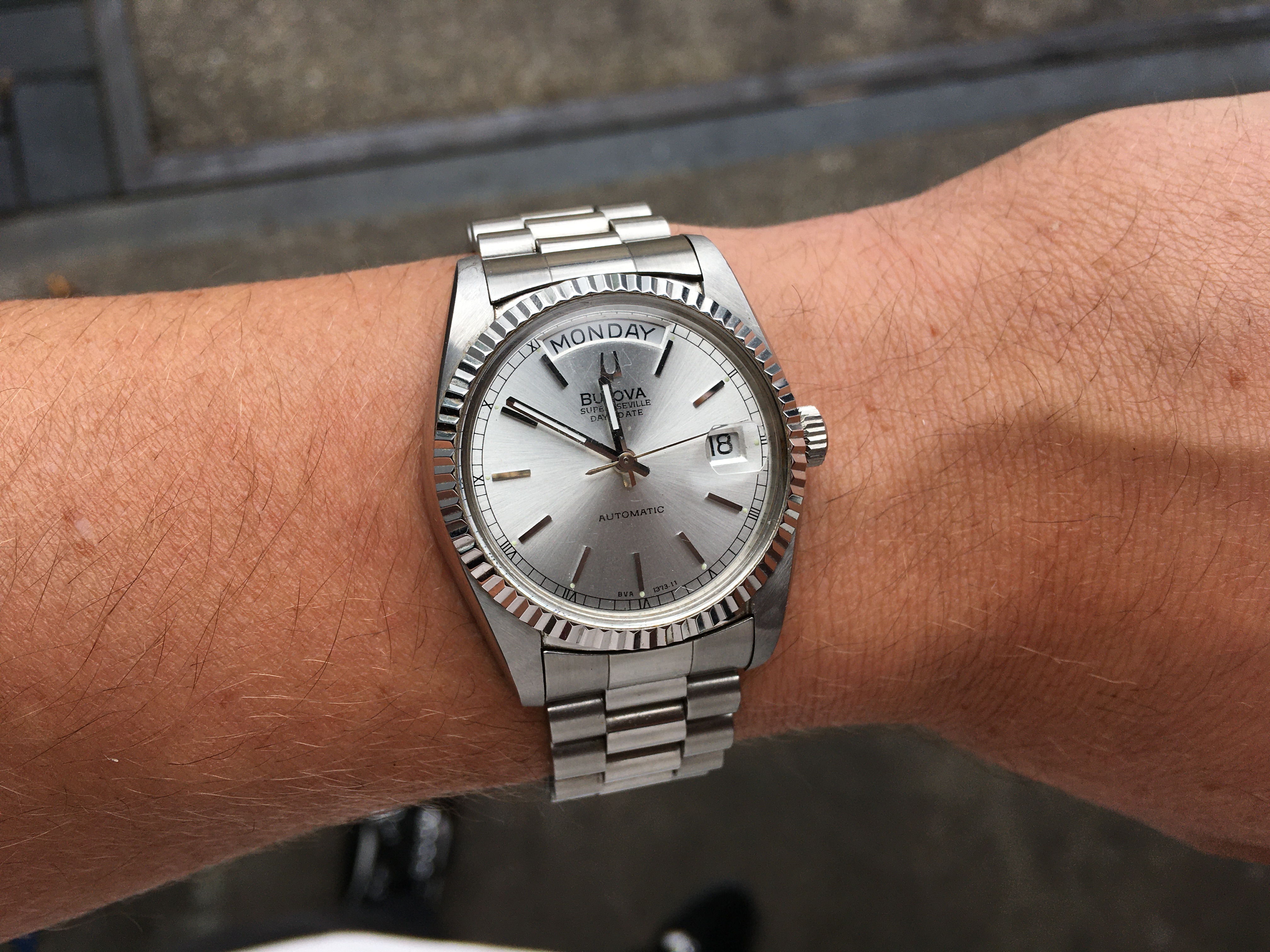 Kortom, ik ben op zoek gegaan naar een stalen Bulova Super Seville. Mooi model, goede afwerking, nette prijs, vintage en op de een of andere manier wordt deze hommage (door mij) gedoogd. Helaas lift de Super Seville behoorlijk mee op de populariteit van de Rolex Day-Date waardoor het lastig is om een mooi exemplaar voor een redelijke prijs te vinden. Ook viel het me op dat er best wat verschillende varianten te vinden zijn: