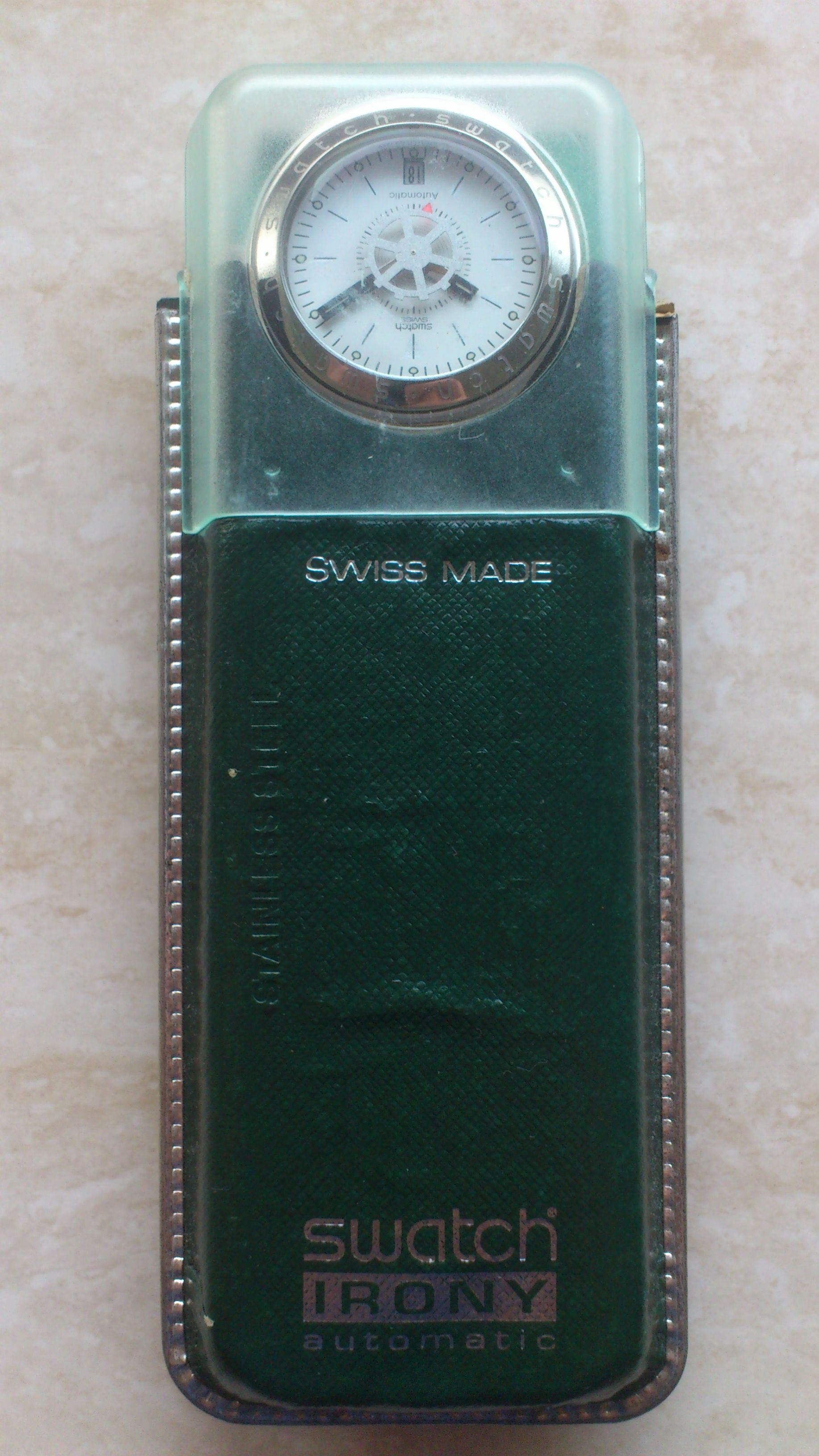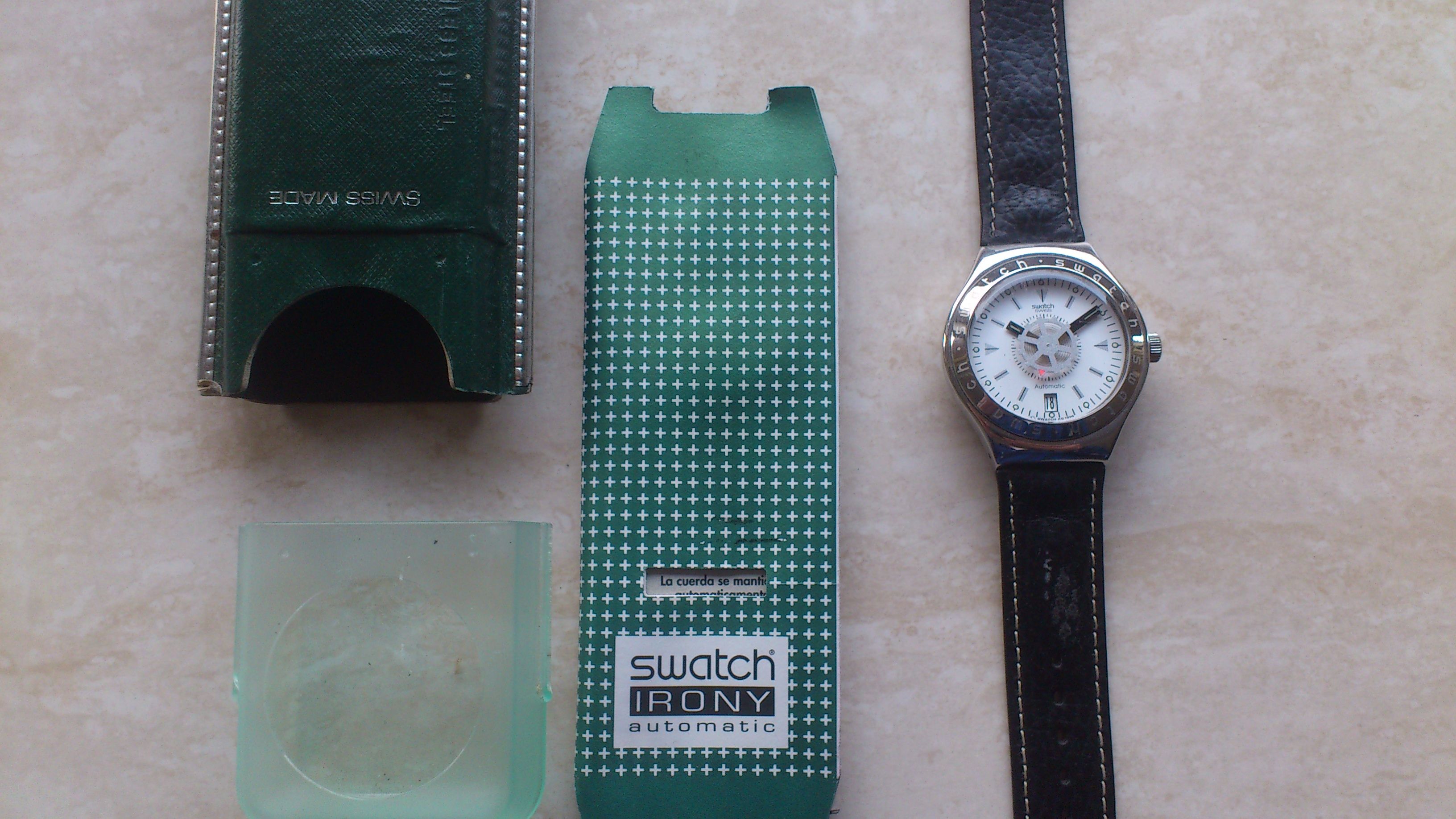 Nieuwe aanwinst kwam gisteren binnen, een Swatch Irony automatic, de Spinnin YAS401 om precies te zijn. Uit 1996/1997 (staat 1996 op, maar lees overal 1997).
