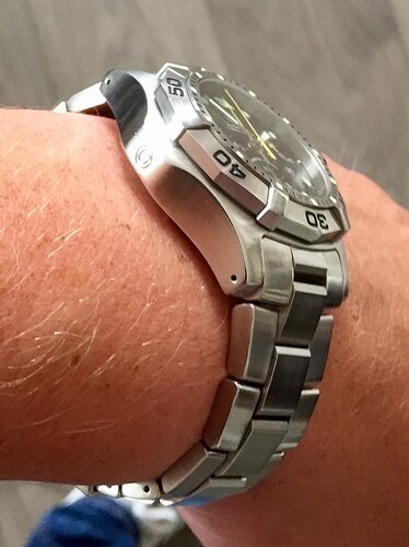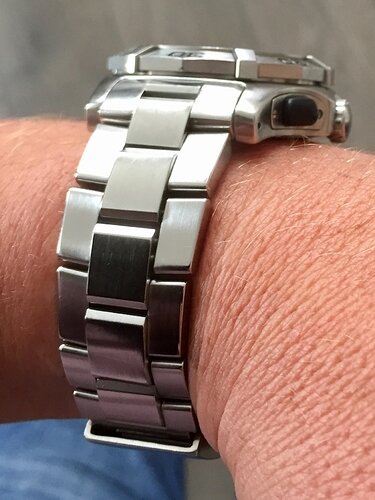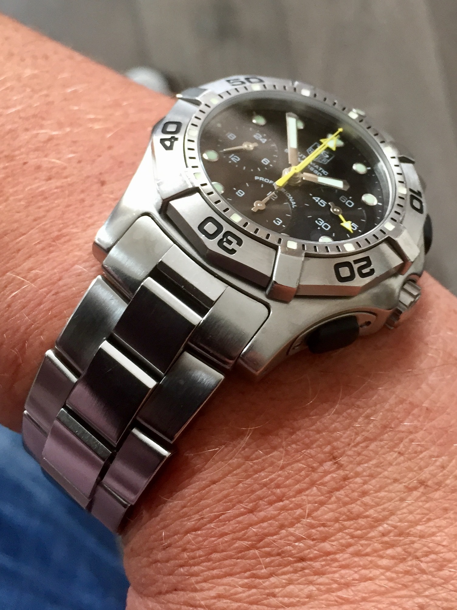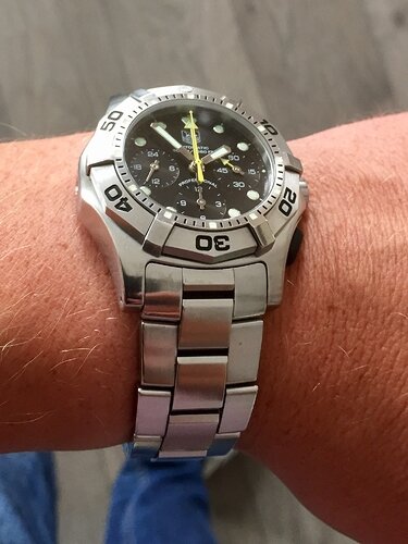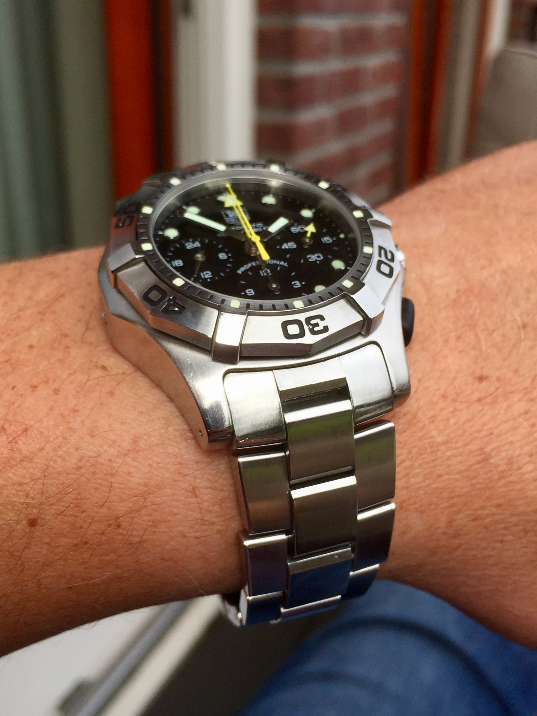 Zo blij als een kind! 43mm is precies mijn sweet spot en de dikte, bouwkwaliteit, het geweldige uurwerk (Calibre 60 Automatic met chronograafmodule van Dubois Depraz) en de geweldige looks doen het voor me. En dan die centrale gele chronowijzer! Net als bij de Lemania. Built like a tank, kan 500m druk aan. Bij mij zal 2m in het zwembad de max zijn, maar wel kloek gebouwd dus.