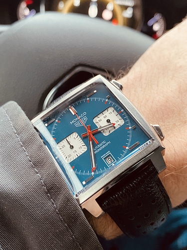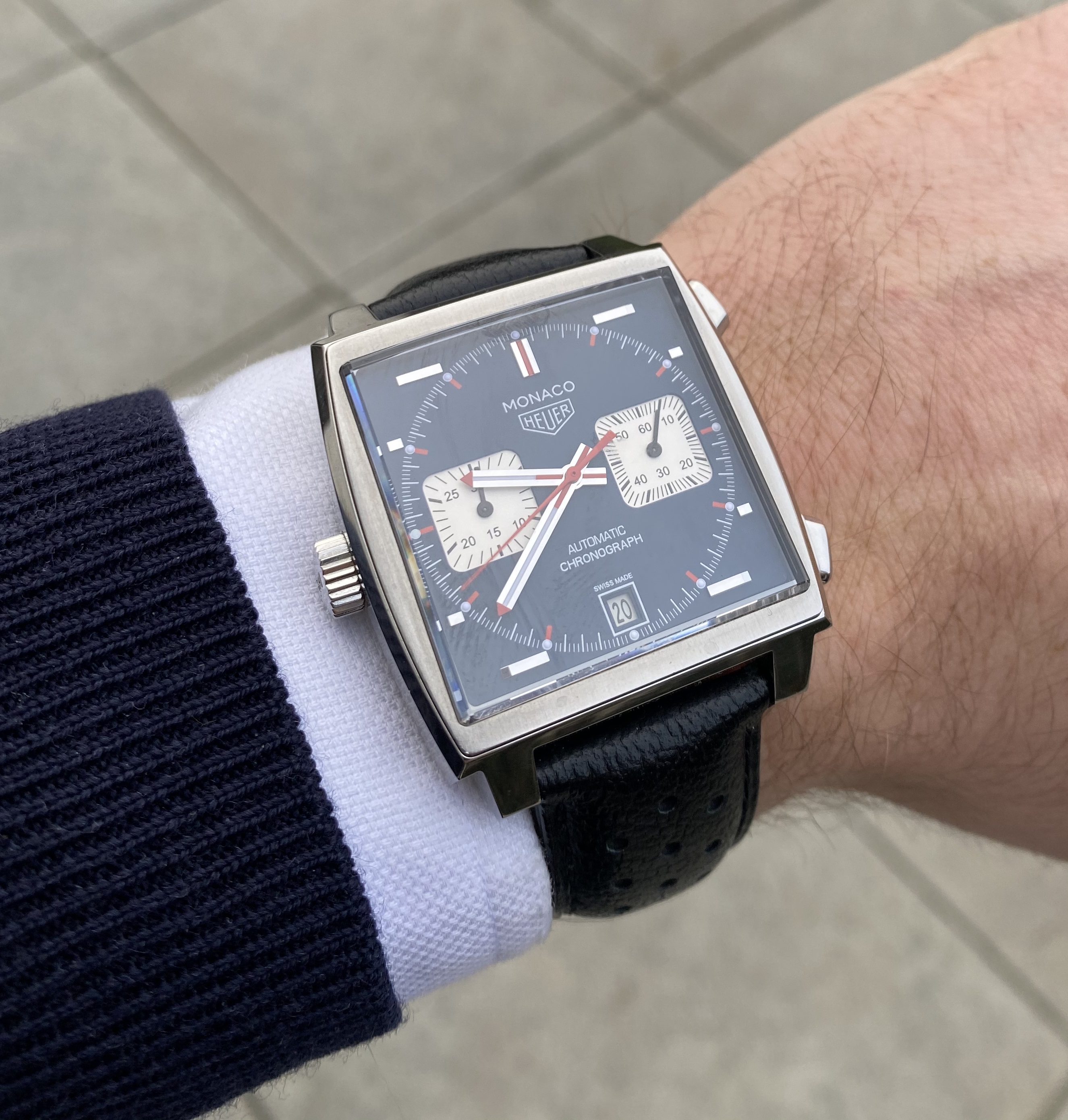 Gefeliciteerd! I.t.t. jou vond ik 'm niet comfortabel dragen, te groot, te vierkant, te hoog maar het blijft een prachtig horloge, zeker deze die de originele Steve McQueen uitvoering erg dicht benadert.