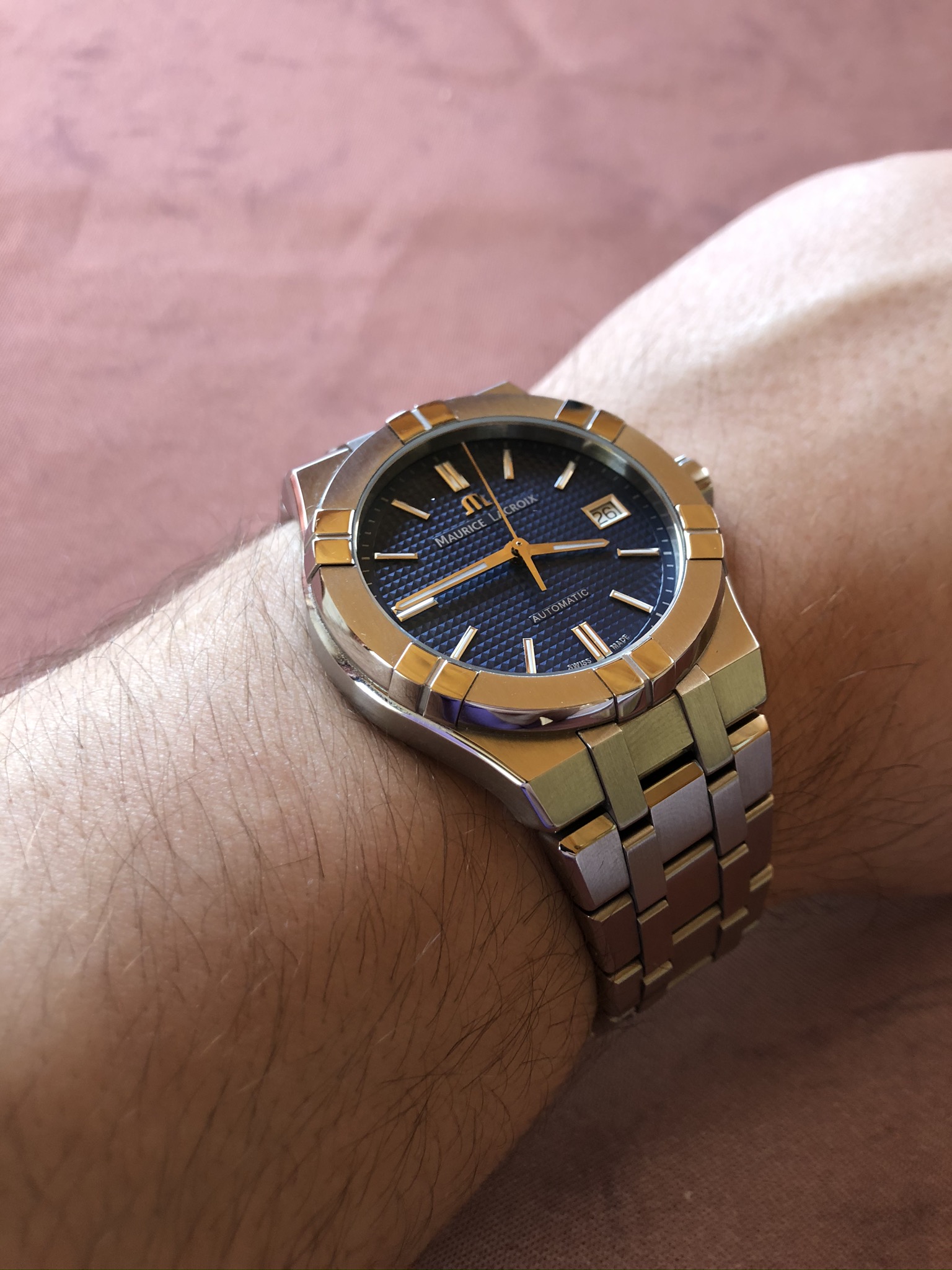 Met de Maurice Lacroix Aikon heb ik mijn eerste mechanische horloge gekocht. Na al een aantal maanden mee te lezen op dit forum bleef de Aikon toch steeds terugkomen. Inspiratie van het design is natuurlijk niet ver te zoeken. Bovendien krijg ik toch ook de indruk dat er niet heel veel mensen fan zijn van ‘Maurice Lacroix’. Voor een merk als Oris of Nomos zie je veel meer waardering op het forum.