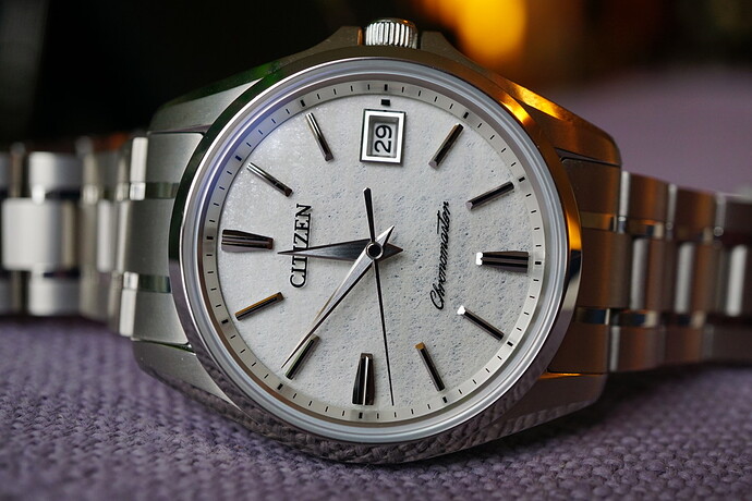 Ze zijn goed in dat soort wijzerplaten. En het lollige is dat iedere plaat uniek is omdat het om een lap hand-gemaakt ambachtelijk papier gaat die tussen een zonnecel en een saffieren plaat is geperst.
