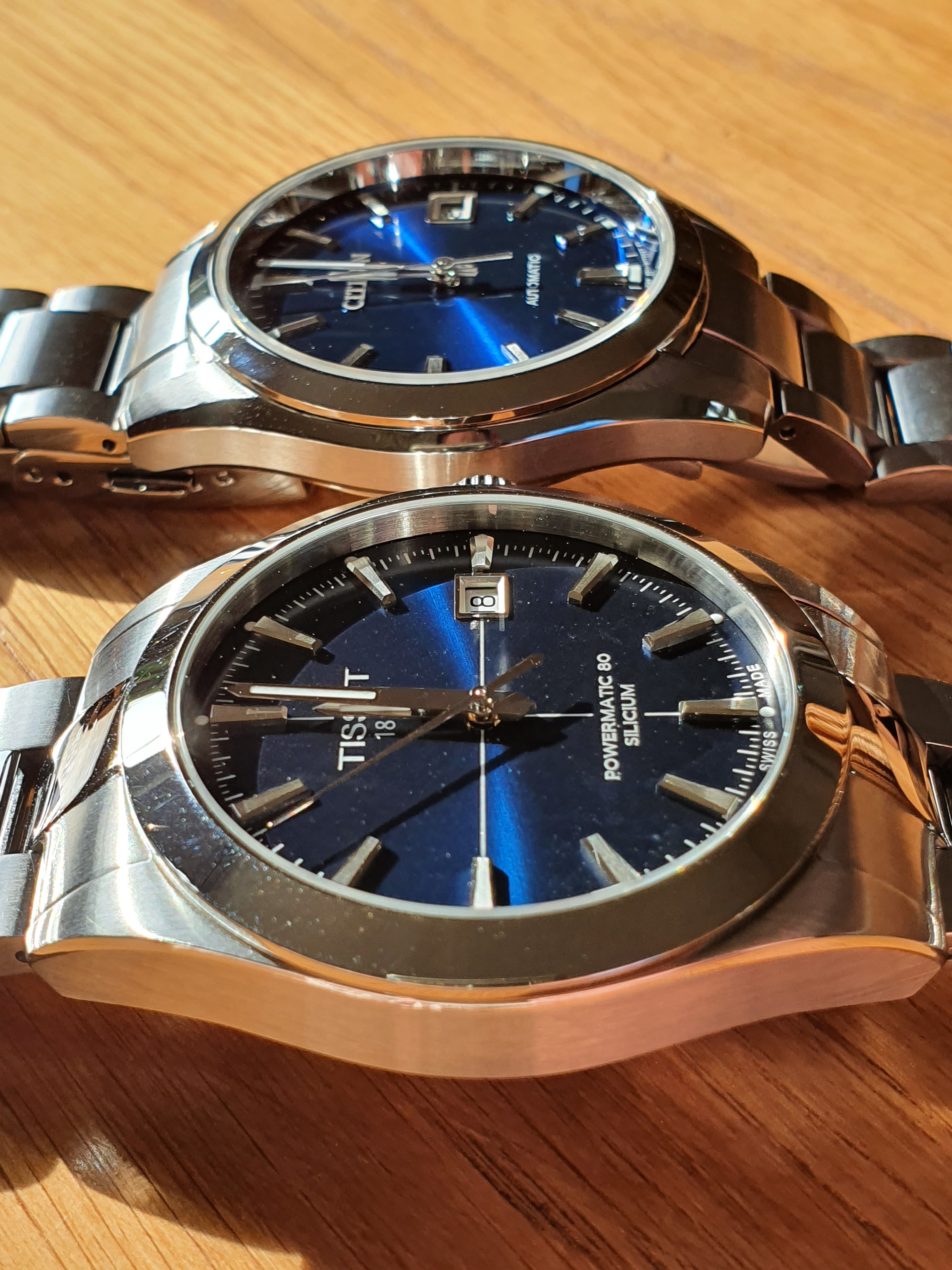 Beide zijn voor mij horloges die voldoen aan wat ik ervan verwacht: betaalbare kwaliteit (dus degelijke materialen, degelijk in elkaar gezet, goed presterend, dus precies lopende automaten en betrouwbaar), naar mijn smaak mooi design, fijne afwerking, draagbaar bij verschillende gelegenheden.