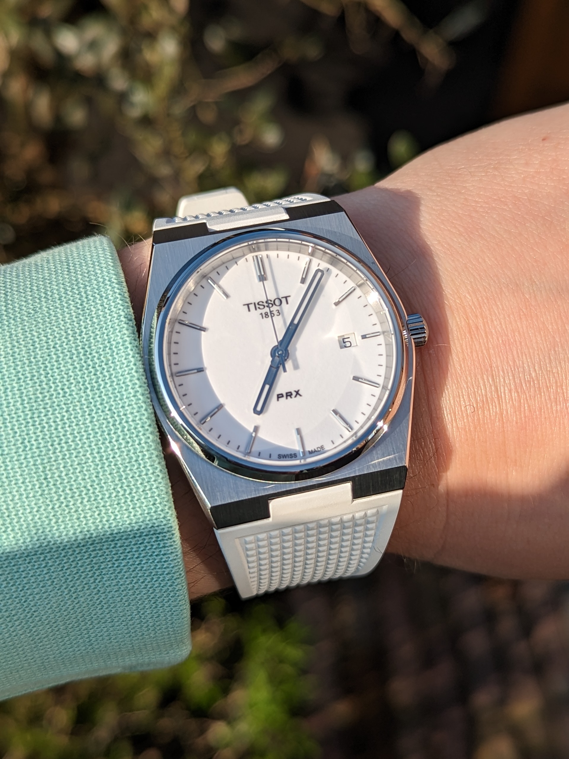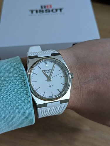 Zo ongeveer ruim een jaar geleden begon het horloge virus weer aan te wakkeren en kocht ik mijn donkerblauwe PRX Powermatic als herinnering voor de geboorte van mijn eerste zoontje. Nu, enkele horloges rijker en een jaar verder blijft de hobby zoals waarschijnlijk bij vele anderen maar kriebelen. Zo ook nu weer… pas geleden zag ik dat Tissot een nieuwe witte full lume PRX op rubber aankondigde, en was mijn eerste gedachte meteen verrassend & verfrissend!
