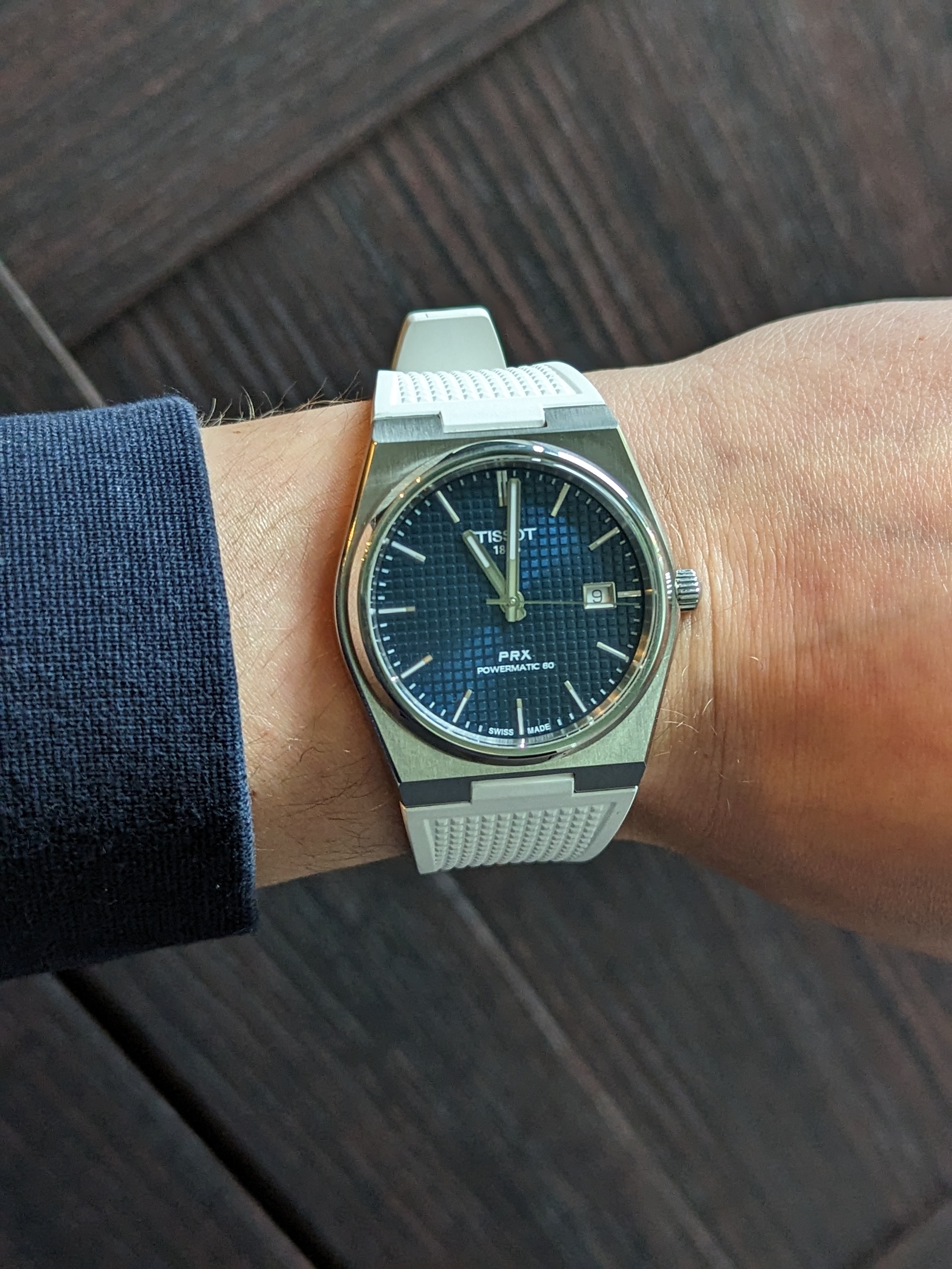 Ik heb de zwarte dial maar die rubberen band is erg comfortabel!
