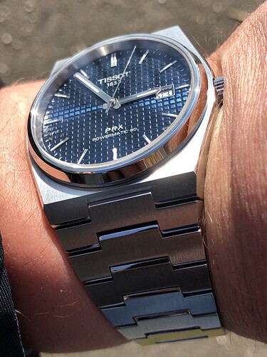 Je hebt fraaie horloges in je collectie @RLC en dit is weer een fraaie. Mooie foto’s ook. Ik heb recent nog gekeken of er een titanium versie is, maar dan moet ik me toch op de gentleman richten. Weliswaar geen automaat, maar titanium verkleint je keuze aanzienlijk. Daarnaast vind ik een quartz erbij wel handig. Maar goed, jouw Tissot is absoluut raak, zeker in het blauw. Enjoy!